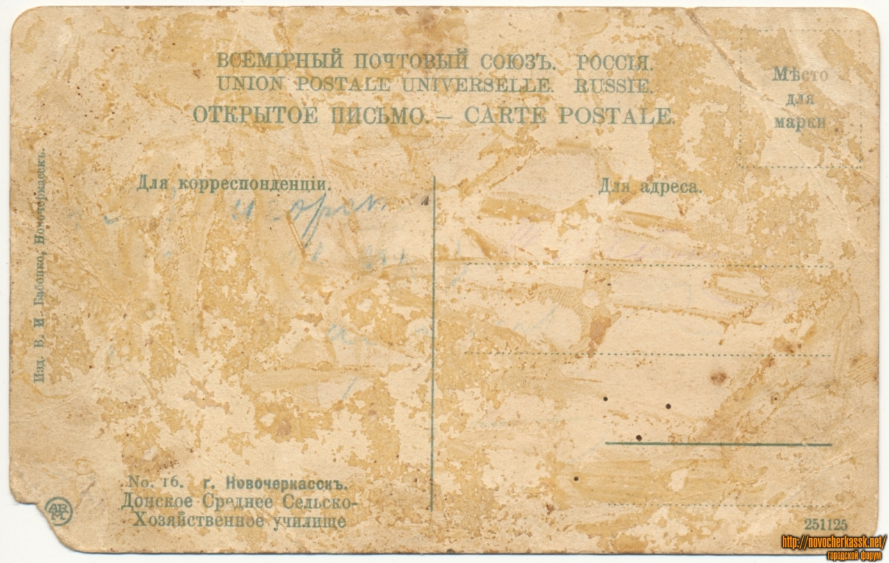 «Донское Среднее Сельско-Хозяйственное училище». Пос. Персиановский