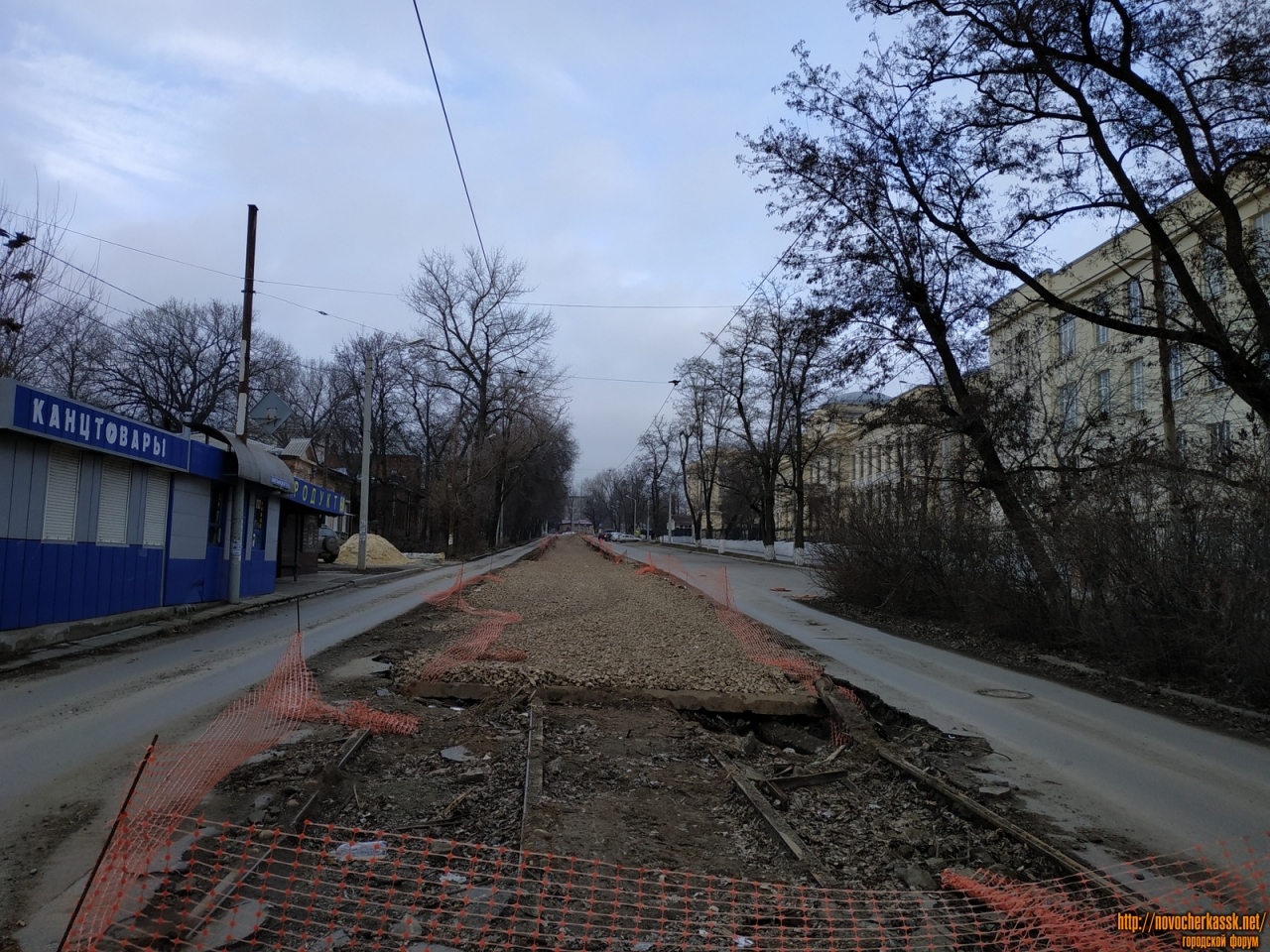 Ремонт трамвайных путей на улице Богдана Хмельницкого. Вид с улицы Просвещения в сторону Троицкой