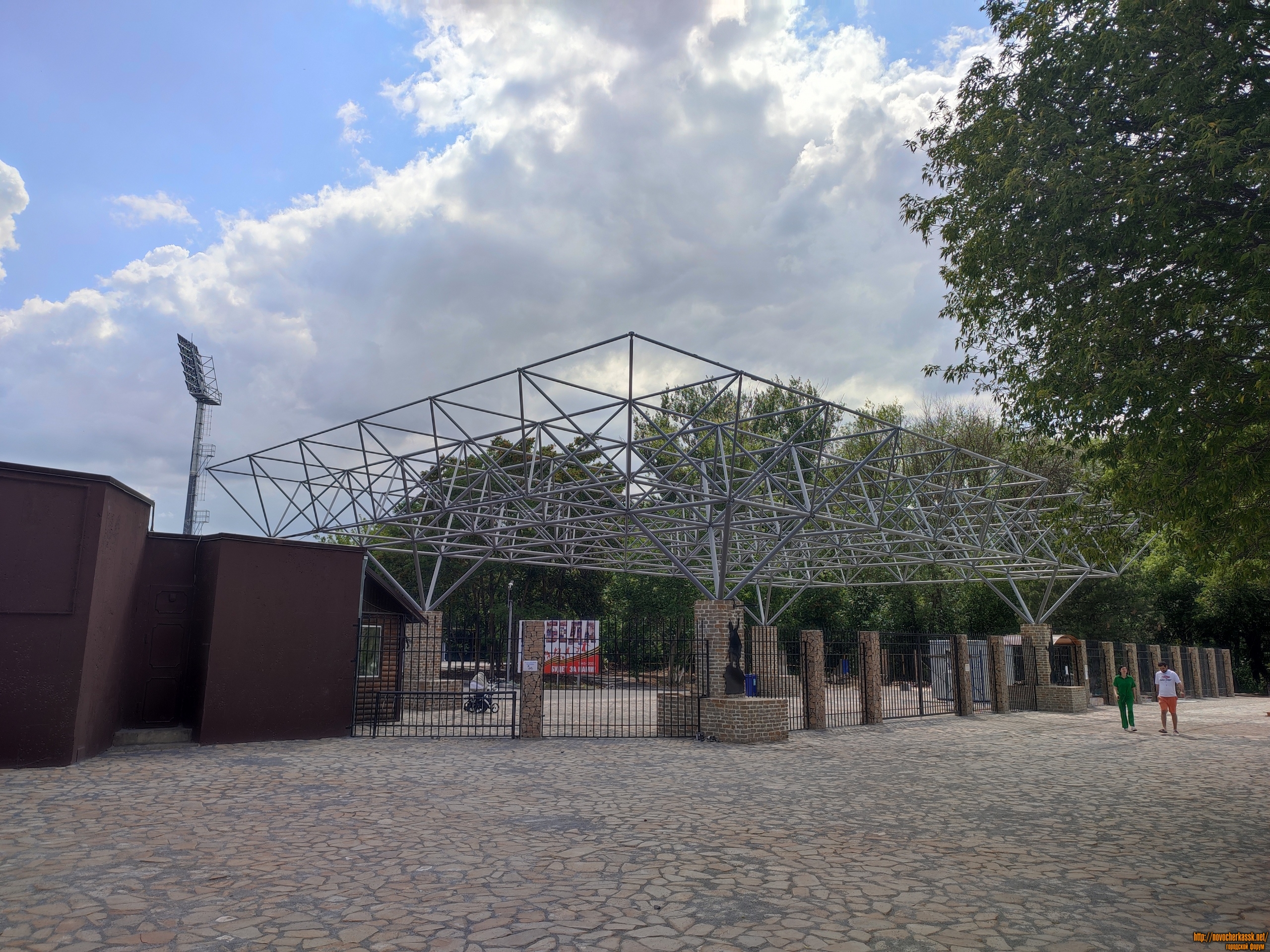 Вход в стадион «Ермак» на пл. Юбилейной. Идёт реконструкция