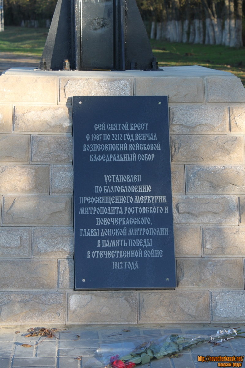 Мемориальная табличка на кресте на въезде в Новочеркасск