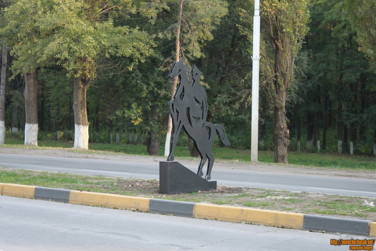 Памятник казаку вдоль рощи на проспекте Баклановском