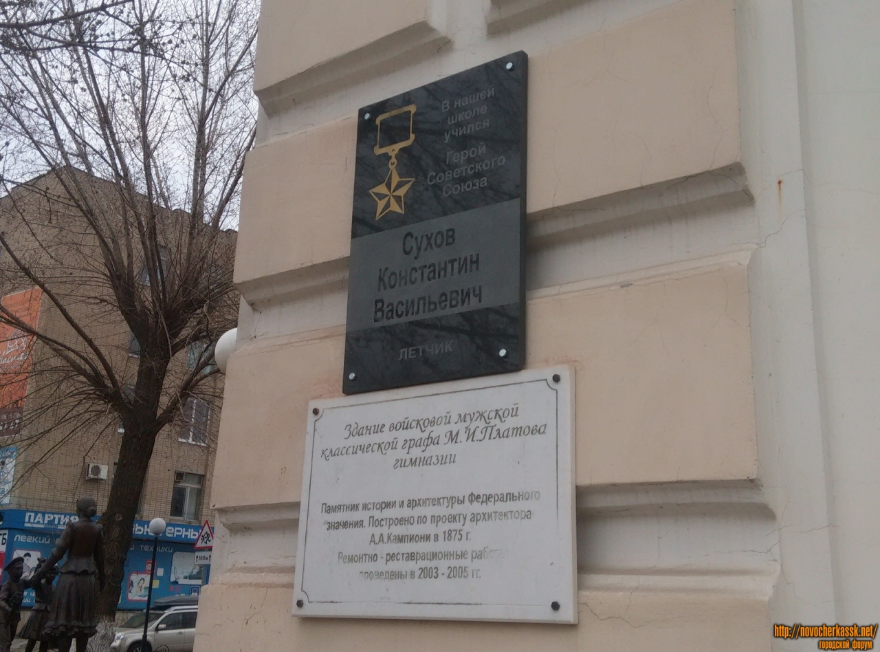 Мемориальная доска лётчику Сухову Константину Витальевичу