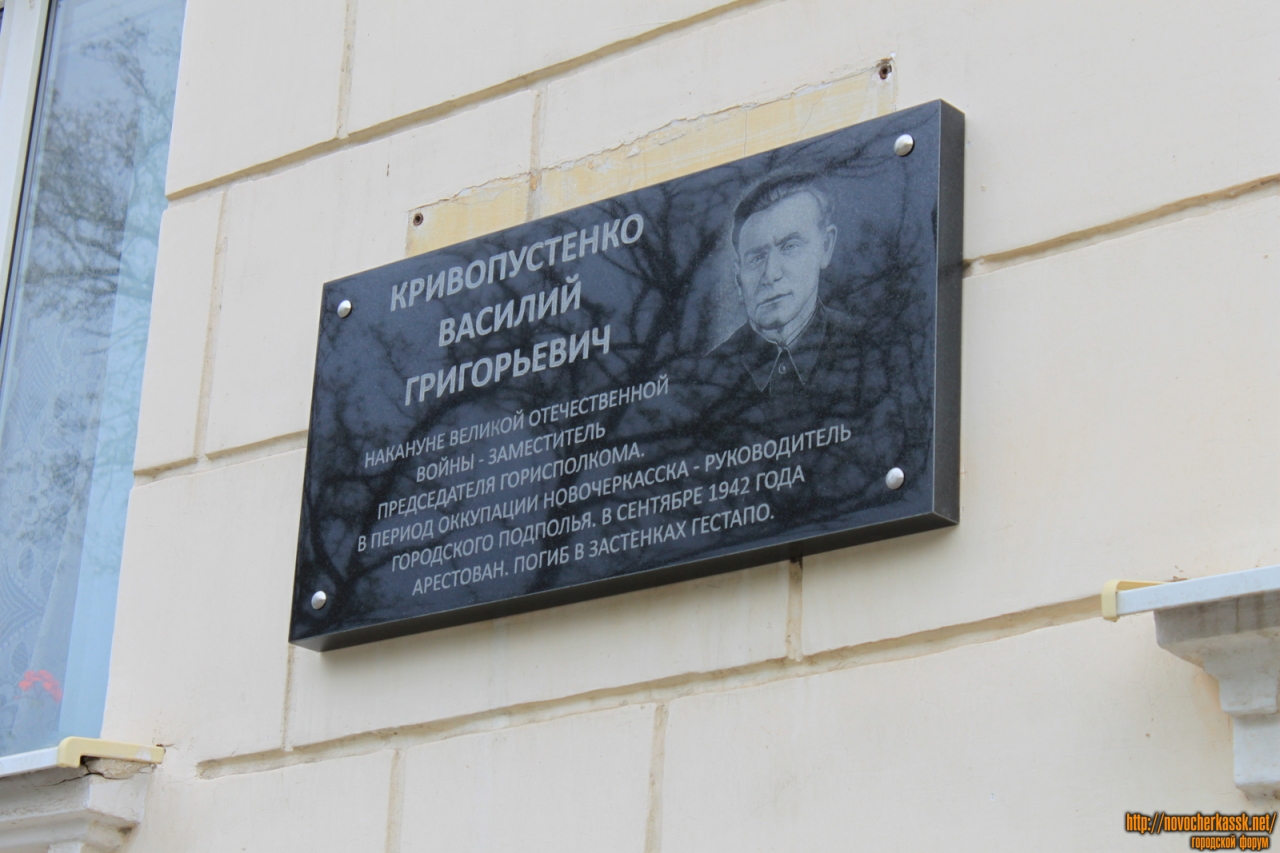 Мемориальная доска Кривопустенко Василию Григорьевичу
