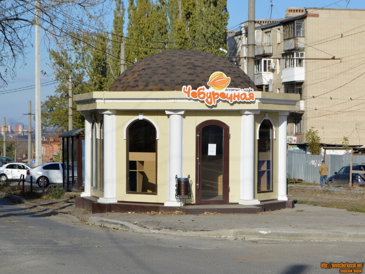Кафе "Чебуречная" находится по ул. Крылова на пересечении с Баклановским проспектом. Расположено в небольшом одноэтажном здании, построенном в 2015 г. В плане здание имеет форму восьмигранника. Каждый угол украшен полуколонной. Фасад оштукатурен и окрашен. Окна большие, узкие с дугообразной верхней частью. Такую же дугообразную верхнюю часть имеют двери. Крыша куполообразная покрыта современным кровельным материалом. Специализируется кафе на приготовлении лёгких завтраков, а также изготовлении чебуреков.