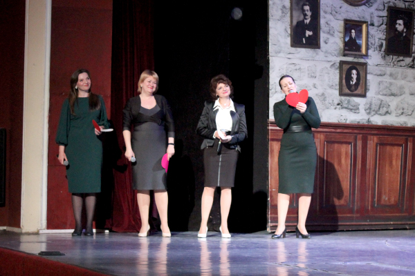 «На сцене долго вам творить, талант и мастерство всегда хранить, без вас не мыслим мы театр, вам есть, за что судьбу благодарить!...» - песня в исполнении актрис Донского театра Натальи Лебедевой, Людмилы Ильиной, Елены Тоцкой, Оксаны Семенюк стала подарком героям вечера от лица труппы театра.