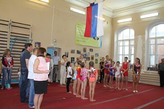В зале спортшколы собралось много гостей: начинающие спортсмены, заслуженные мастера спортивной акробатики, родители ребят, супруга Юрия Кирюнина.