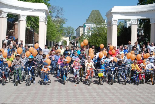 28 апреля в Александровском саду было ярко, шумно, весело и азартно. Ещё бы: здесь собрались более 100 детей и вдвое больше взрослых. А собрала их всех компания «МИТОС», которая в честь своего 20-ти летнего юбилея организовала первый в истории Новочеркасска детский велопробег.