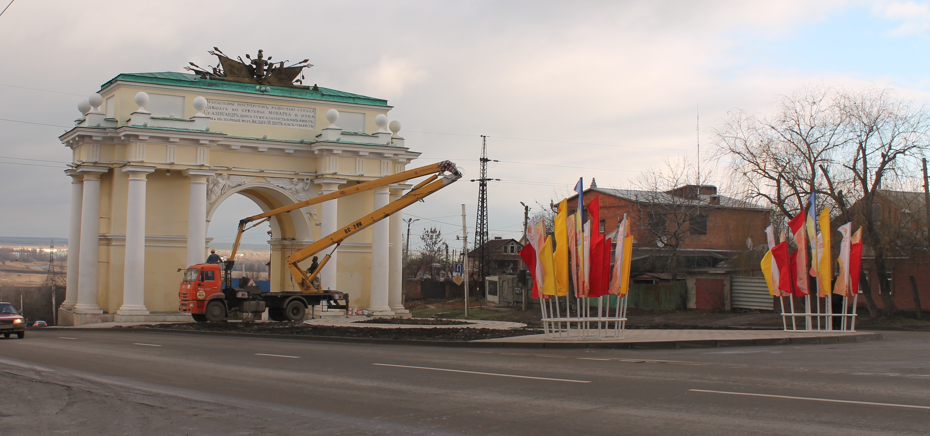 - Маршрут утверждается на уровне московского оргкомитета. Первоначально был предложен несколько иной маршрут по наиболее презентабельным частям нашего города, но утвержден с небольшими изменениями. Маршрут начинается с приезда олимпийского огня 21 января на железнодорожный вокзал. Там его торжественно встречают, и автомобильным транспортом перевозят на спуск Герцена. На площадке возле триумфальной арки в 10.00 будет дан старт эстафете. Здесь соберутся пресса, почетные гости, губернатор области Василий Голубев, представители оргкомитета, представители правительства области, мэр. Поэтому наша задача - подготовить, прежде всего, это место, чтобы оно было более презентабельное, смотрелось выигрышно. Сегодня мы увидели недостатки - наша триумфальная арка становится местом встречи с автолюбителями. Вы знаете, что не так давно, осенью, было крупное ДТП, когда автомобиль врезался в это сооружение. Только отремонтировали – и на новогодних праздниках похожая авария. Откололась часть плитки, разрушен участок арки, и вновь придется делать ремонт. От спуска Герцена вверх маршрут будет пролегать по проспекту Ермака к Вознесенскому Собору, затем факелоносцы обогнут Соборную площадь против движения.