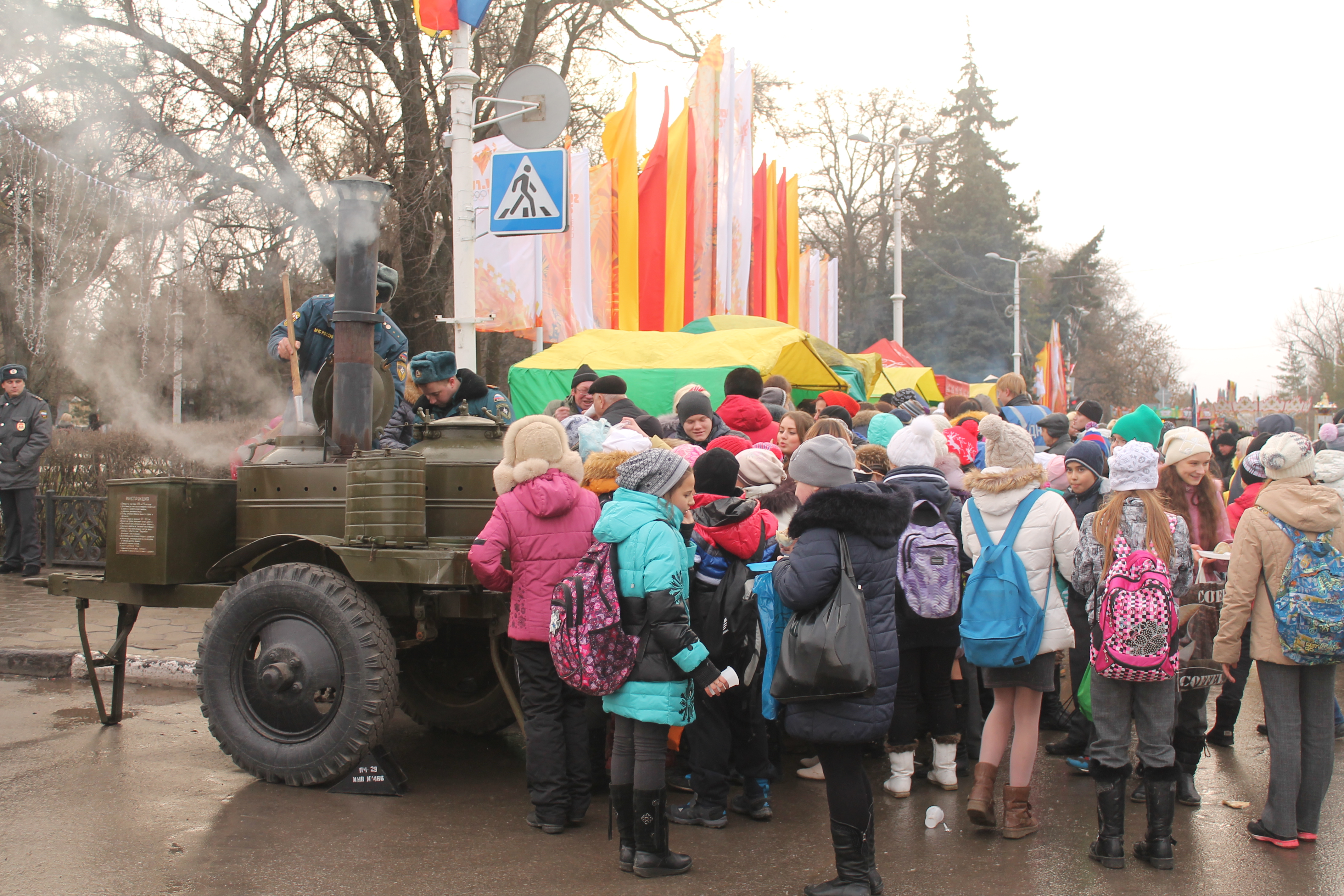 Новочеркасцы очень любят народные гуляния, и даже несмотря на холод и срывающийся мокрый снег, многие пришли попробовать вареничков. Попробовать мучных изделий с сюрпризами мне не удалось, уж слишком много проголодавшихся ребятишек сбежалось на ароматный запах. Очередь к палаткам с варениками никак не уменьшалась, а вот сладости пользовались не такой большой популярностью (может, потому что были платными?).