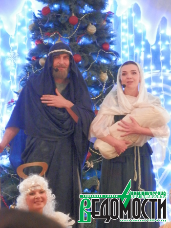 На этот раз в празднике приняли участие большое число ребят, которые пришли в театр вместе с родными. С одинаковым удовольствием и дети и взрослые стали участниками небольшого представления у рождественской ёлки. В гости к ребятне пришли Ангелочек, принесший радостную весть о рождении Христа, и Вифлеемская звезда, указавшая путь к месту Его рождения. После несколькие весёлых подвижных игр пришла пора рождественской истории – к ёлке пришли Дева Мария и старец Иосиф с Младенцем на руках. Именно из их уст прозвучало предание о появлении на свет Сына Божьего, которое до глубины души тронуло всех участников праздника.