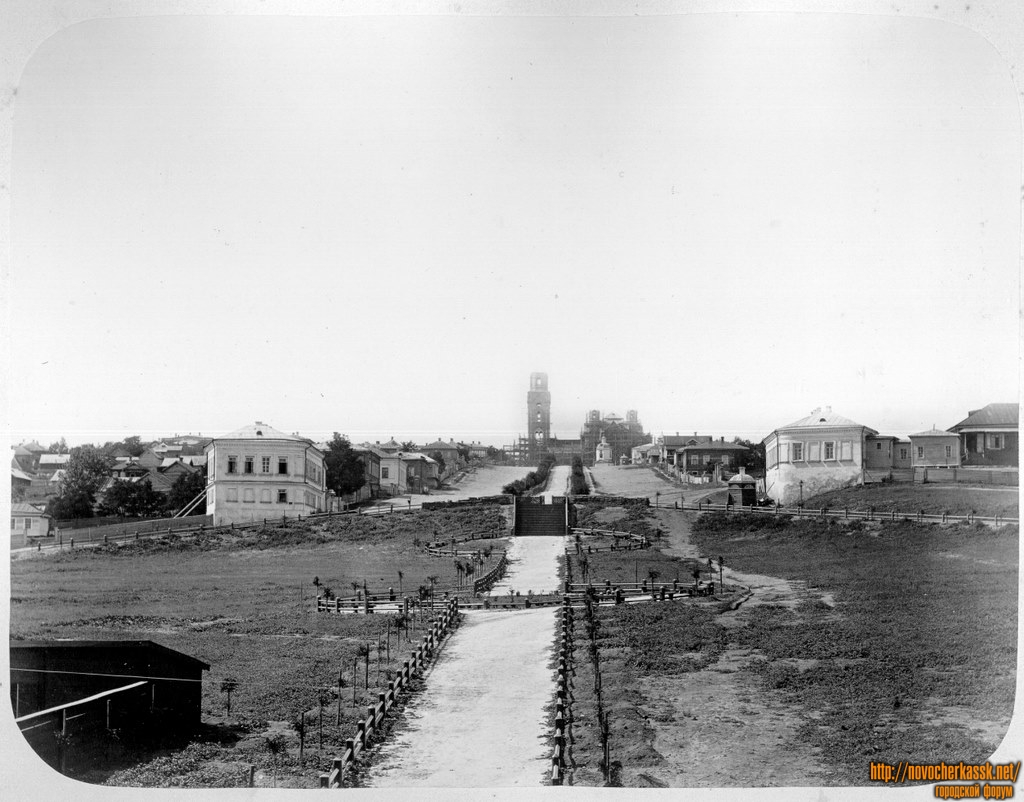 Крещенский спуск, вид от вокзала на строящийся второй вариант собора.