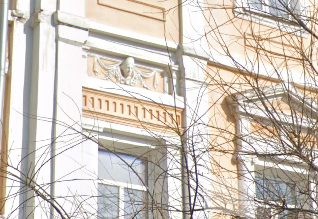 Второй этаж у здания определённо не был снесён, по крайней мере внешние стены точно, так как над пятым окном от угла по Платовскому проспекту до сих пор сохранился женский горельеф (прикреплённое фото 1), а дальше над другим ещё один, над остальными окнами декоративные элементы скорей всего были со временем либо разрушены, либо удалены при реставрациях.