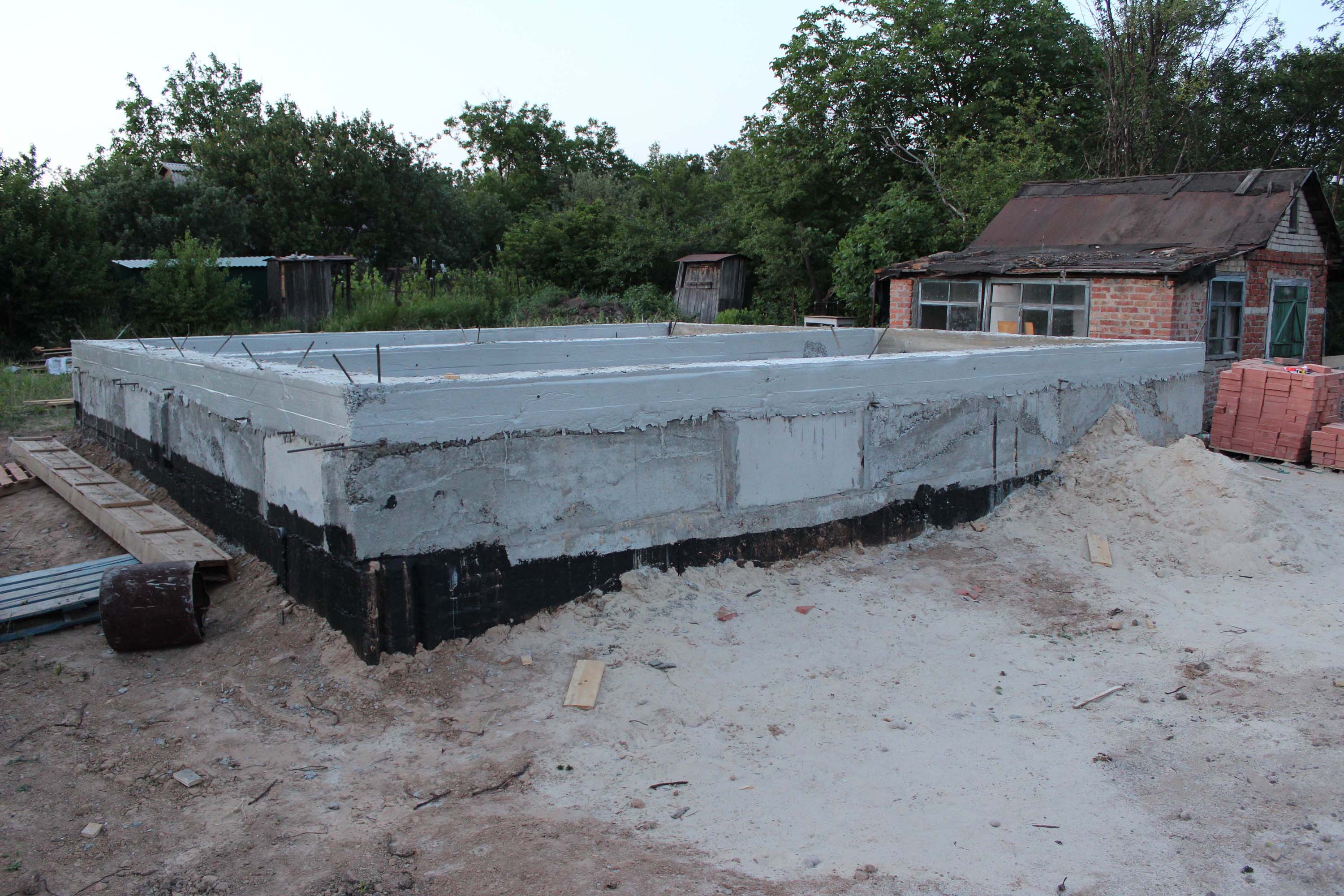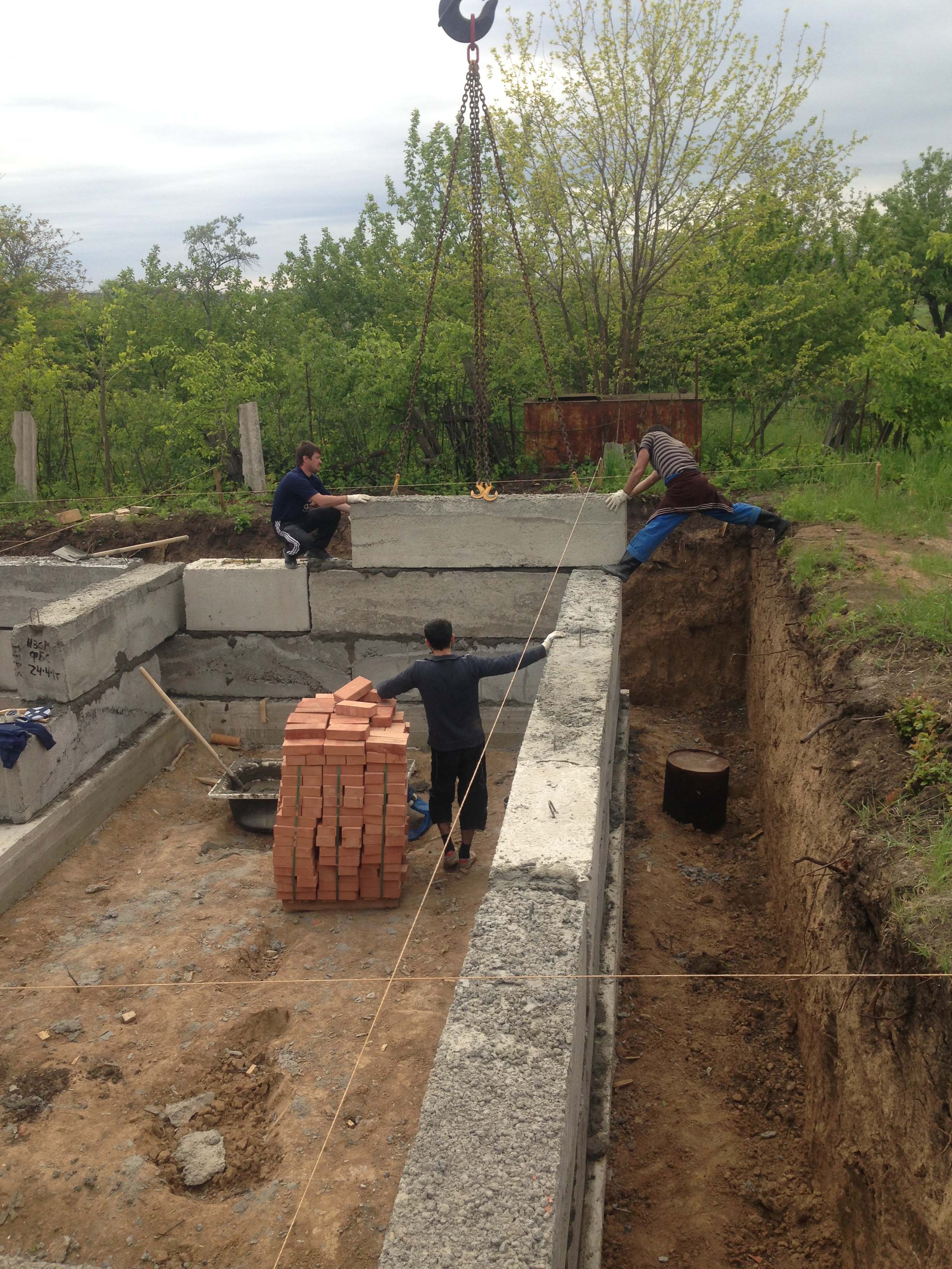 - Залили фундаментную ленту, она настоялась и укладывали ФБС.