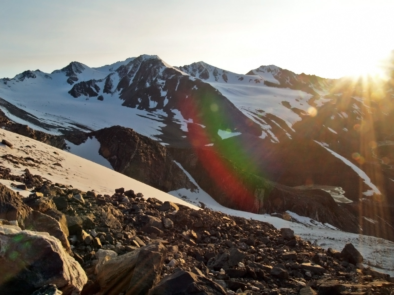 Пока готовится ужин, наступает время «золотого света». Окрестные вершины окрашиваются вечерним освещением. Активно пользуемся моментом, фотографируем всё вокруг.