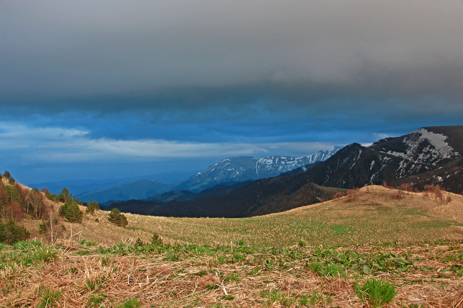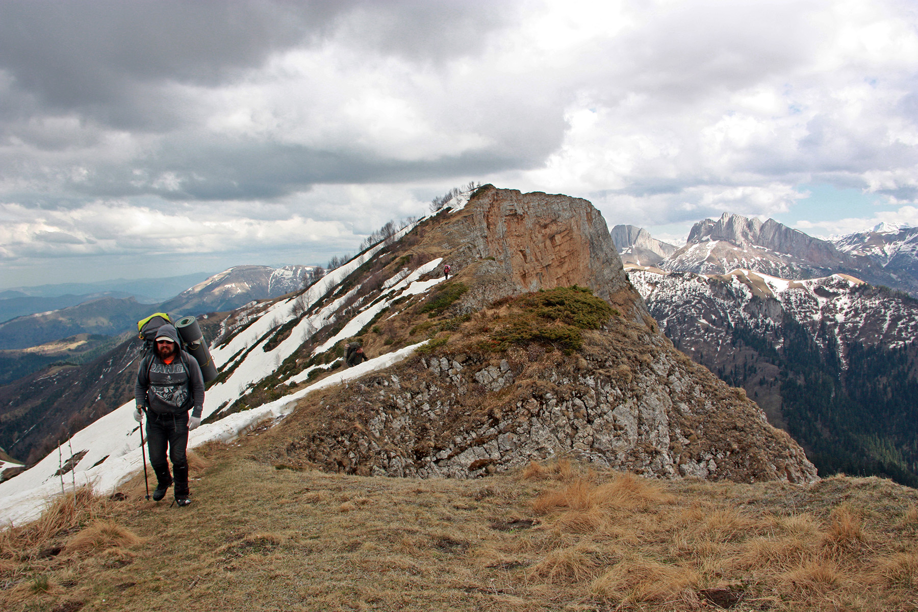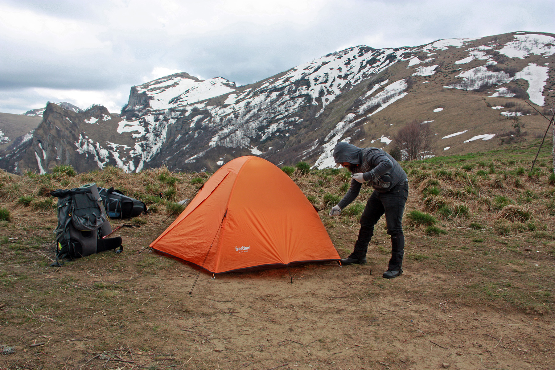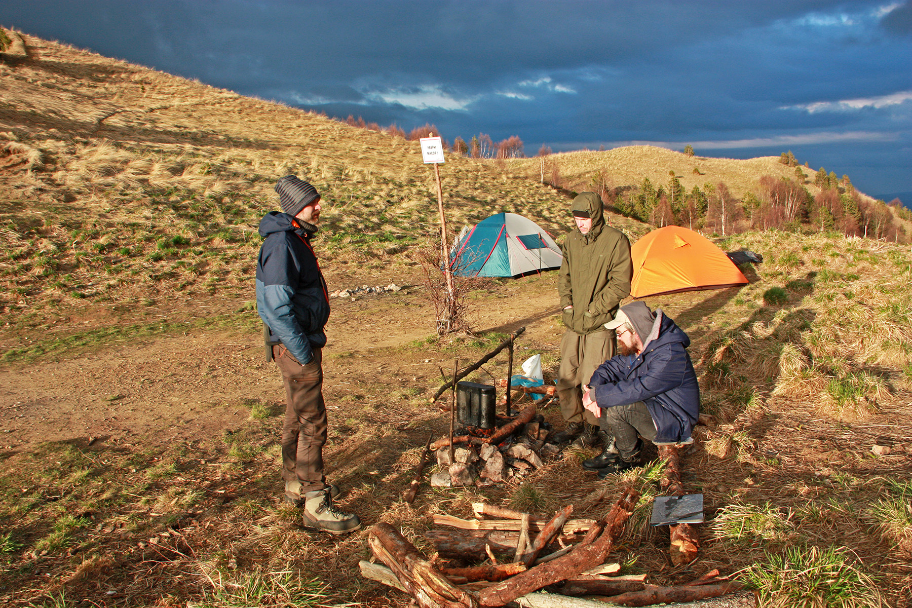 В 16-10 выходим на Тхачский перевал. Перевал-не перевал, плато. В центре вытоптана площадка под десяток-другой палаток. Более-менее ровно. Далее вокруг кочки, и другие «сопутствующие неровности». Мы пришли первые, это радует. Выбираем самые оптимальные места под свои палатки.
