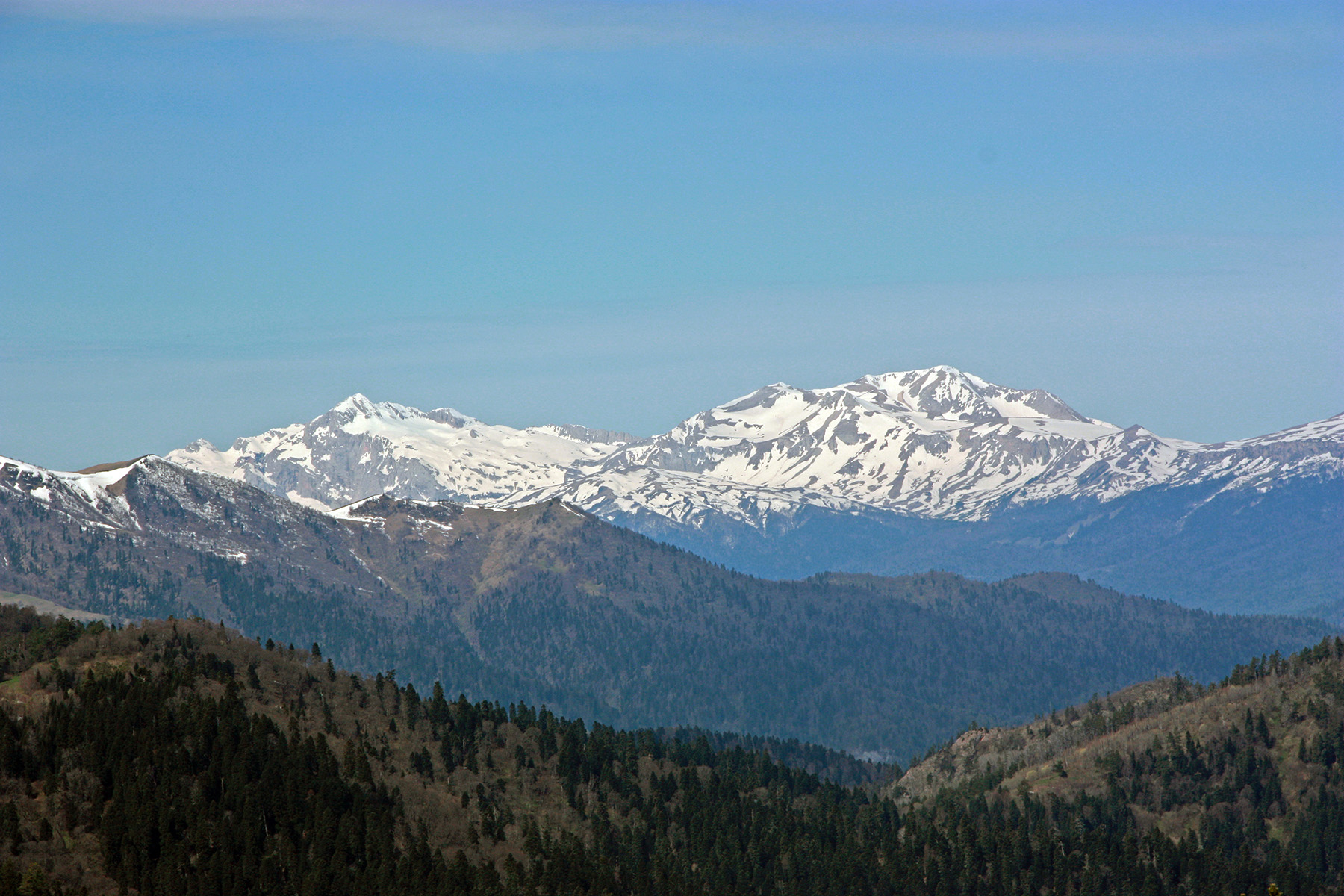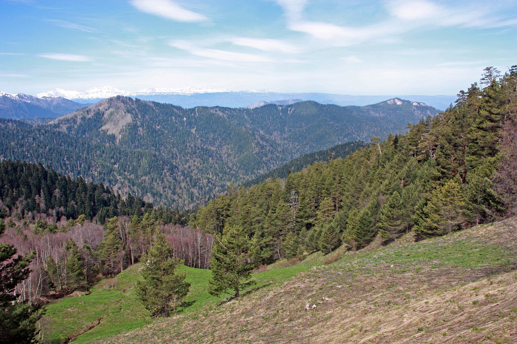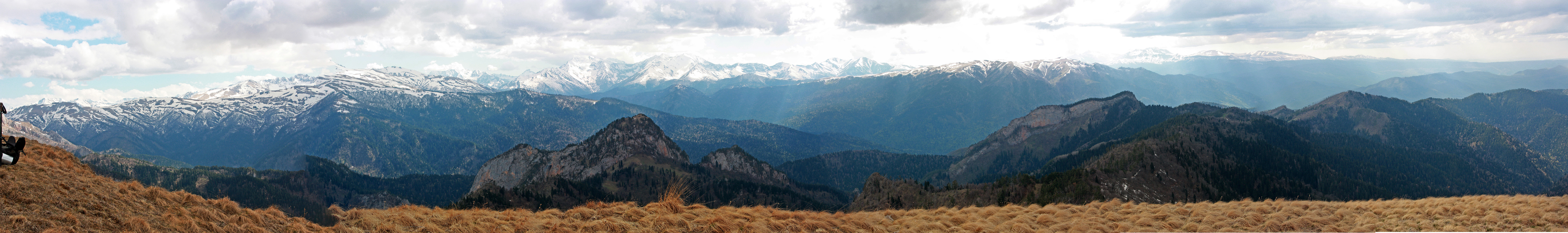 ...панорама с вершины Малого Тхача, на запад-юго-запад. Справа (на западе), видны Лаго-Наки.