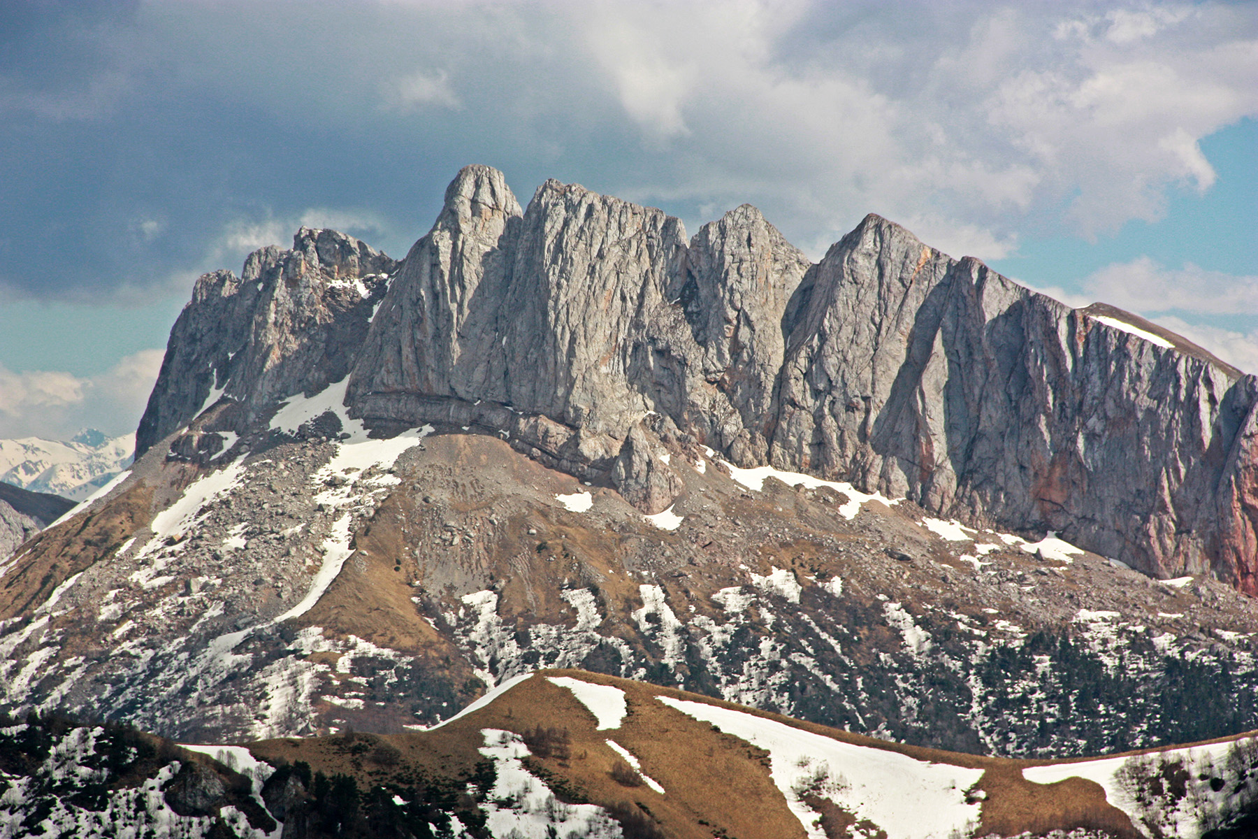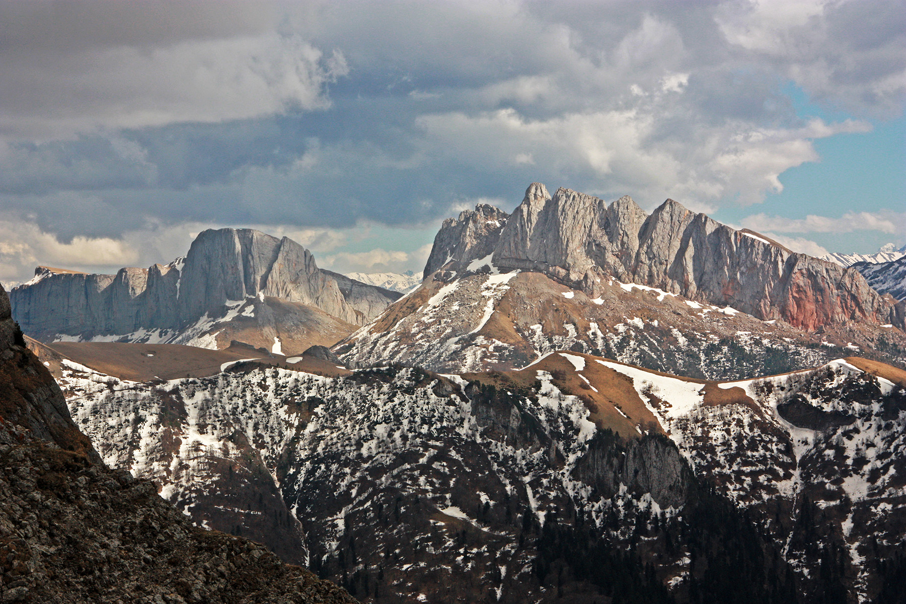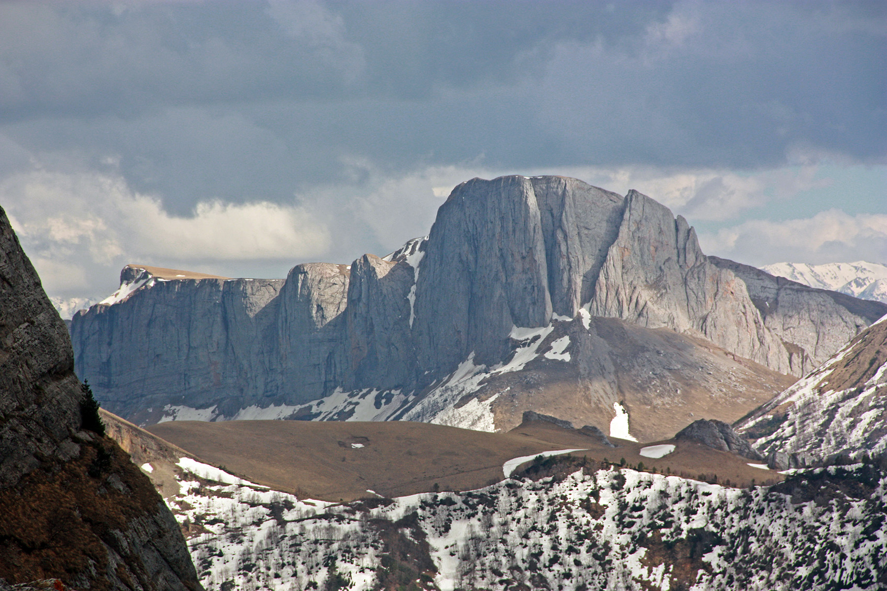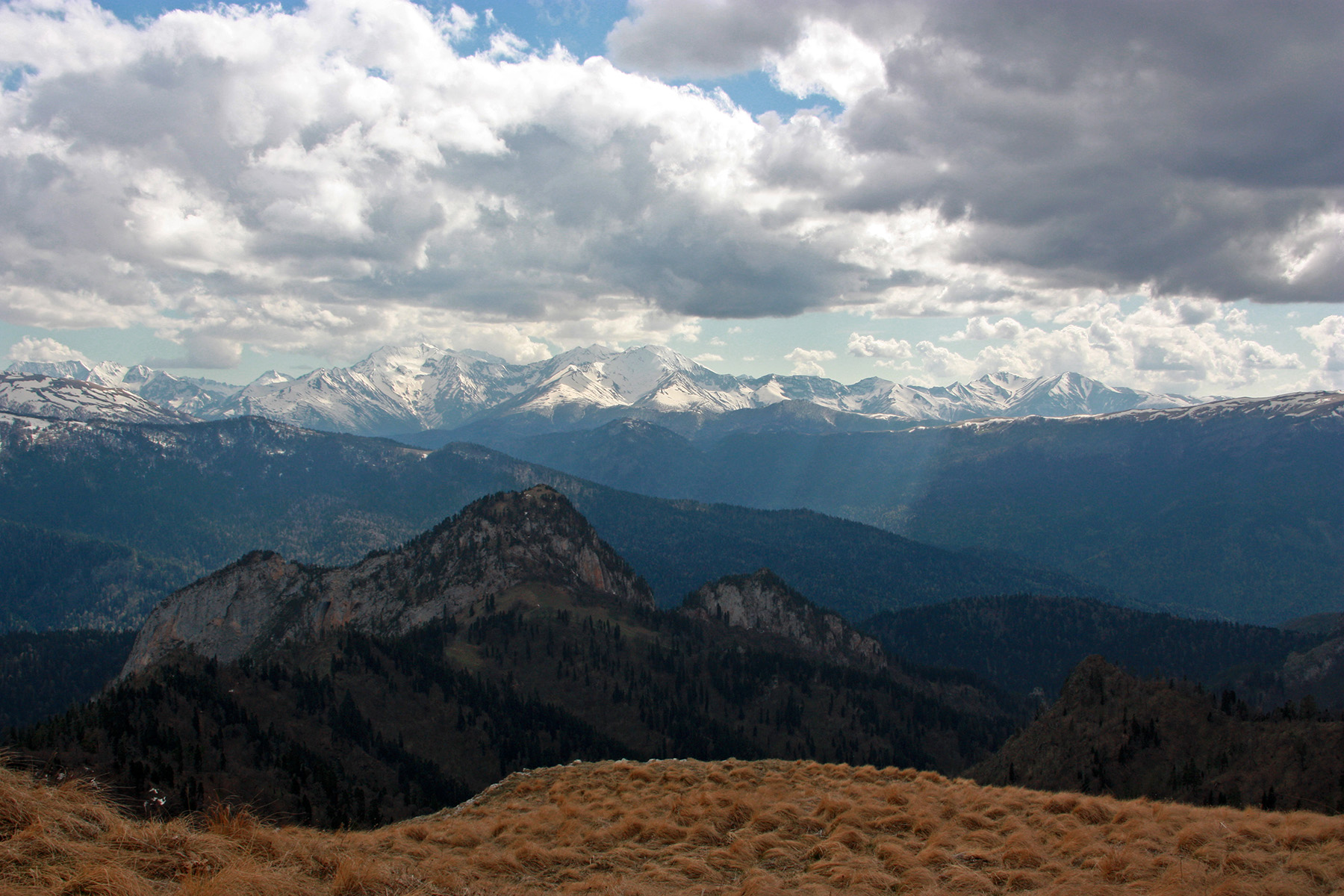 ...через скалу Афонка, вид на район вершин Тыбга, Джемарук, Чугуш.