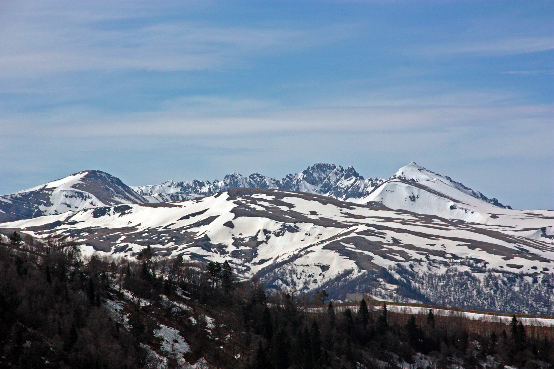 ...Ачешбоки. Слева Восточный (2441,8), справа-Западный (2486,0).