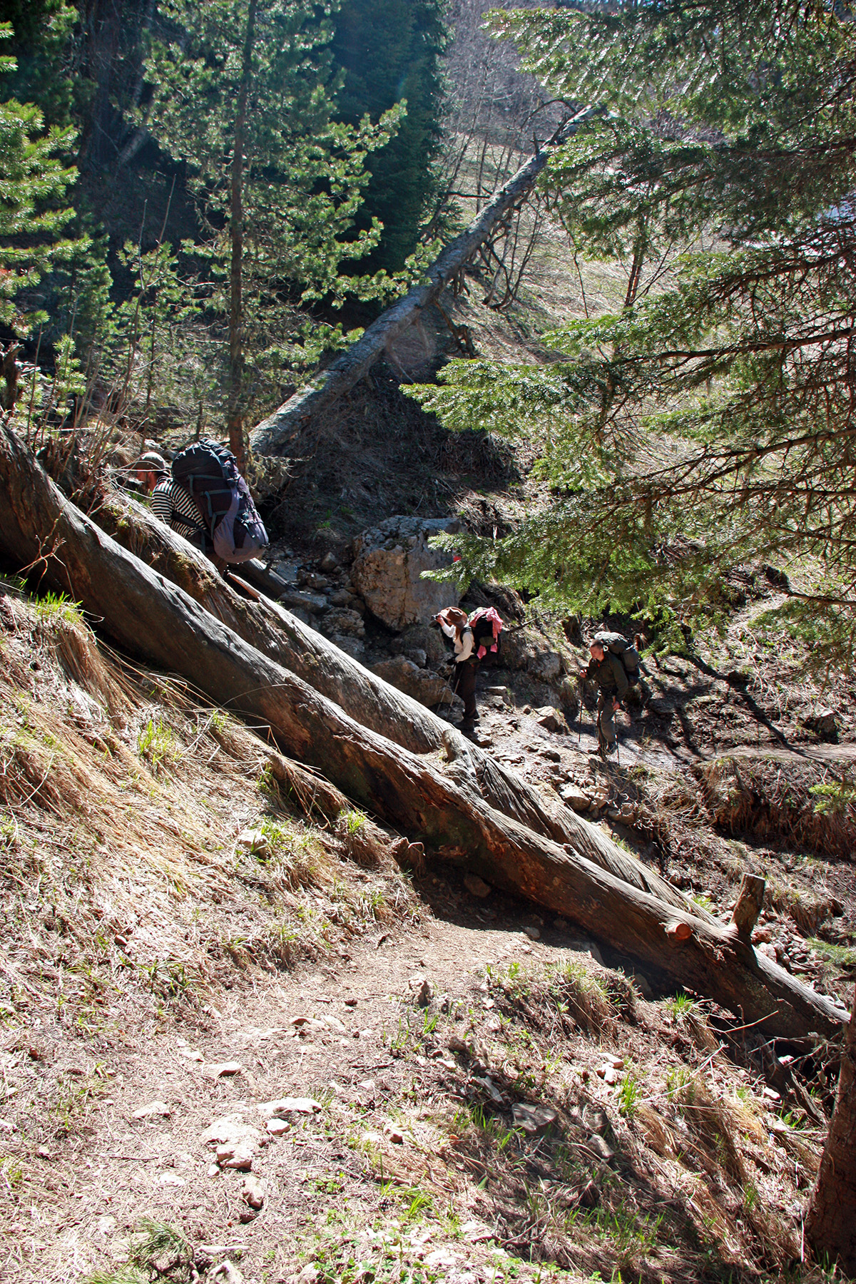 В 15-40 направляемся вниз, в сторону Межтхачского («Тхачского», как на современной карте написано). Тропа хорошо прослеживается. На спуске нас обгоняет группа. Впечатлила отдельная стайка детей, лихо пробежавшая мимо нас. Где моя молодость?