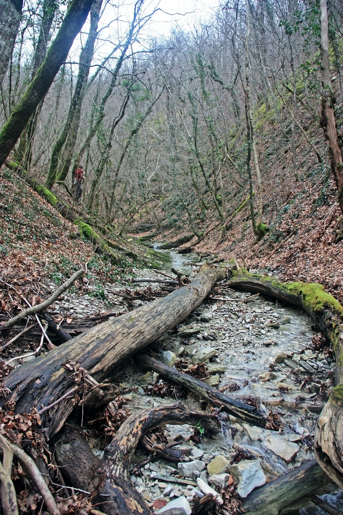 ...если 3 дня назад закончились сильные дожди, шедшие в Пшаде неделю, здесь, получается, дождя вообще не было? Русло сухое, и лес сухой.