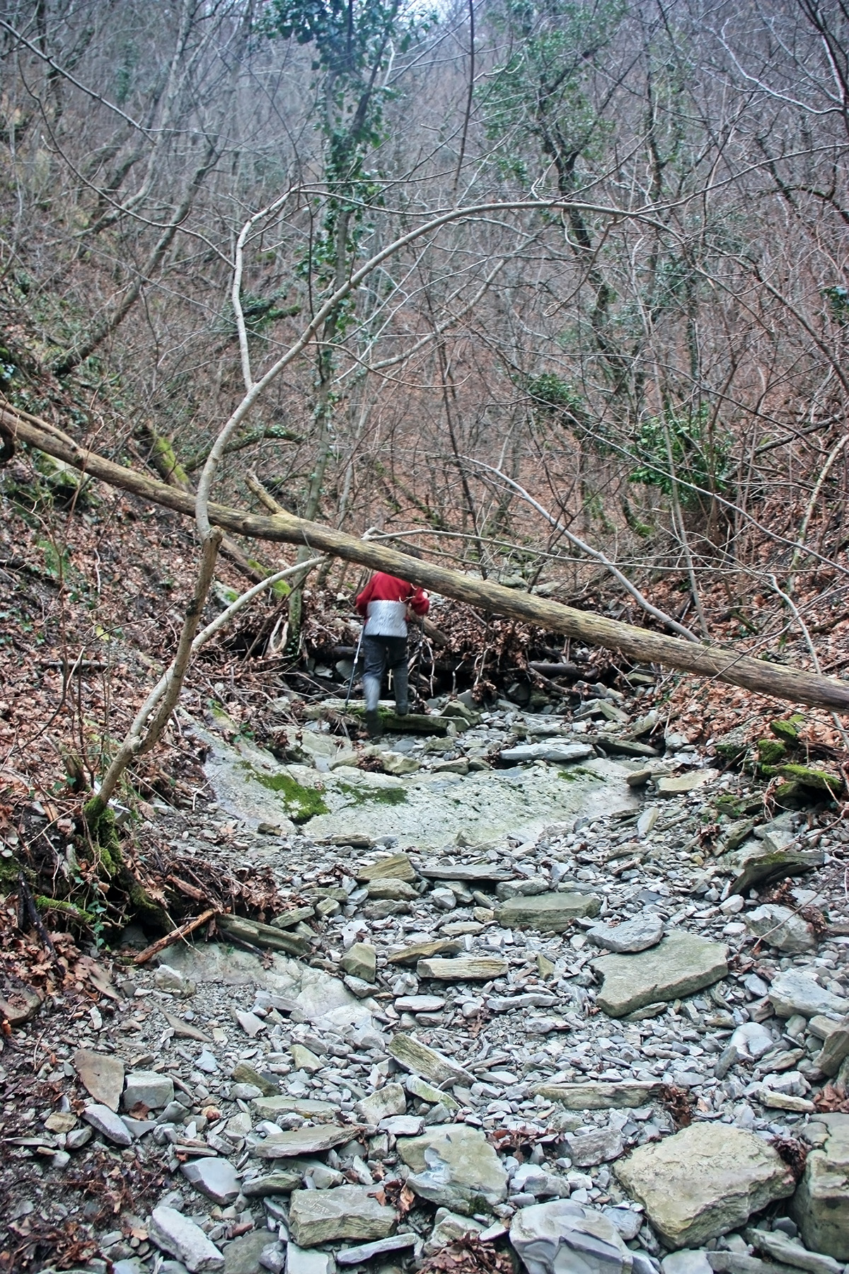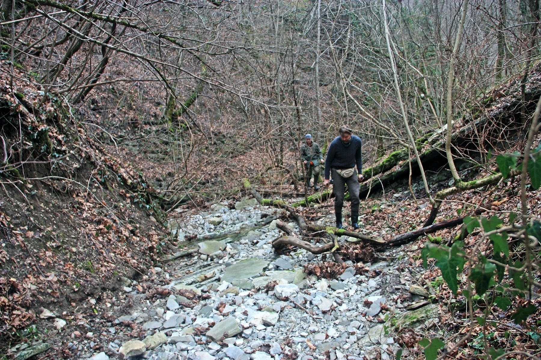 Опять, влево-вправо, по коленцам сухого русла. Протяжённость коленец 30-60 метров. Русло в меру завалено всяким «мусором», идти можно.