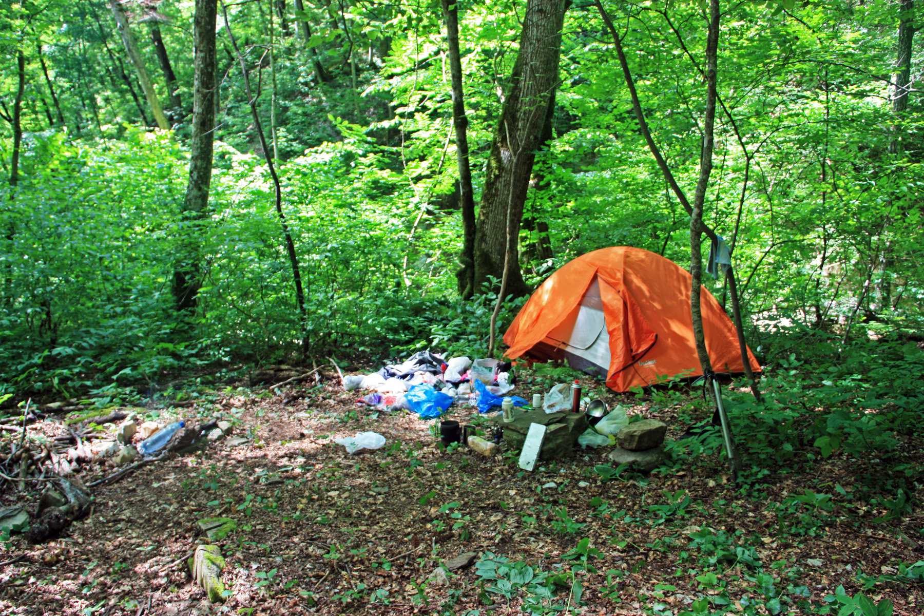 В 13-58 подхожу к палатке. А у меня бардак. Продукты то убрал, а вещи так и оставил валяться у палатки.