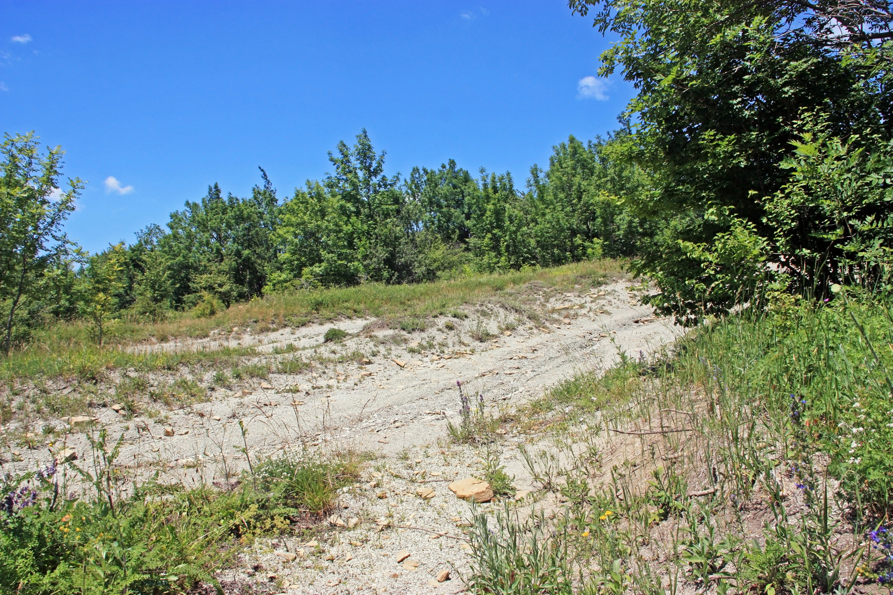 Минут через 15 иду дальше. Стараюсь идти по прогалинам. Прохожу очередную полосу леса, и выхожу на заброшенный просёлок. Время 12-33. Теперь направление движения-на север. Север-северо-запад. Дорога заросла травой, и на ней нет свежих следов машин. Зато полотно дороги, по которому иду, прорезано руслом весеннего ручья. Не глубокое ещё. Через 7 минут дорога примыкает к другой, которая выглядит «живой». Наезжена. Есть русло ручья, но его часть засыпана привезённым щебнем.