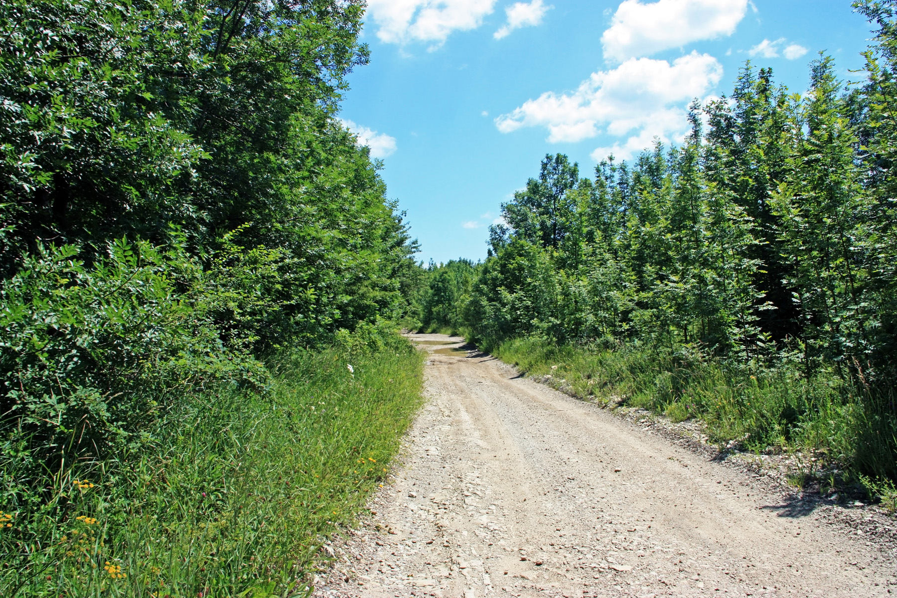 В 13-05 вышел на эту дорогу. Дорога, хоть и без асфальта, но капитальная. Хорошо накатана. Я нахожусь на месте, которое на карте подписано: «Лысые горы».