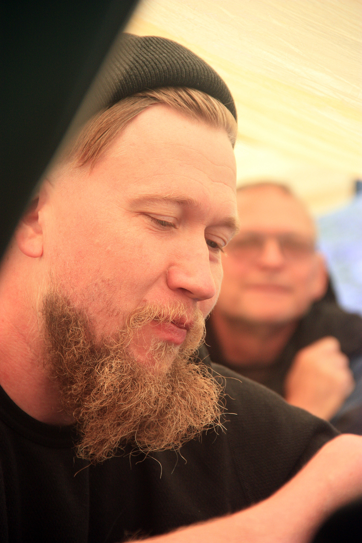 Я берегу фотоаппарат, пока не снимаю. По окончании обеда, не выдержал, сделал пару кадров. А после обеда вновь по палаткам. Всё равно дождь моросит.