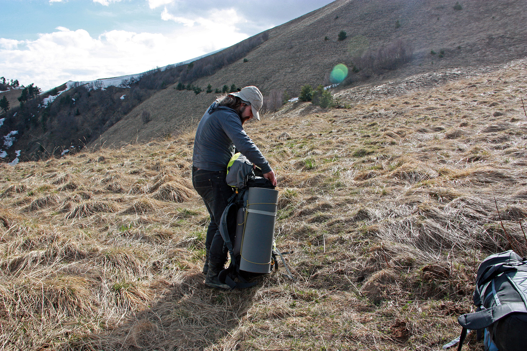 Воду нашли, ручей. Становимся здесь. Пока «гнездились», мимо прошло несколько групп. Вперёд, за Сундуки. А мы сходили за дровами. Пришлось спускаться далеко по крутому склону. Там и набрали сушняка. Кроме того, на 17-00 сделали кофе, погрелись.
