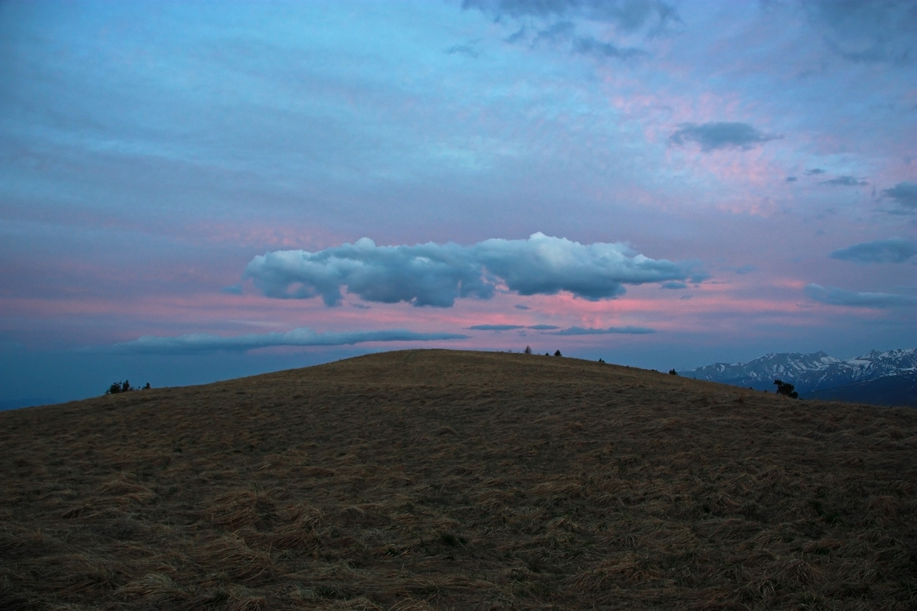 19-25. Чудо! Над нами открылось голубое окно. Открылись краски заката. Любовались, фотографировали. И одновременно ужинали.