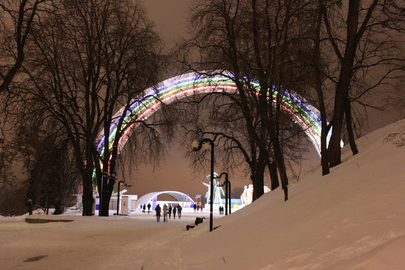 Вечером были сборы и подготовка в обратный путь. Дорога домой показалась дольше, потому что поезда попались с дневными переездами. Правда в этот раз в Киеве мы не стали рассматривать посетителей вокзала, сдали вещи и поехали в центр, на Крещатик. Заглянули в Макдональдс, очень удобное заведение, когда ты в чужом городе и не знаешь, где можно поесть. А потом пошли гулять, куда глаза глядят. Посмотрели на странное сооружение, посвященное неизвестным, полюбовались видом на набережную, прошли по центральным улицам.