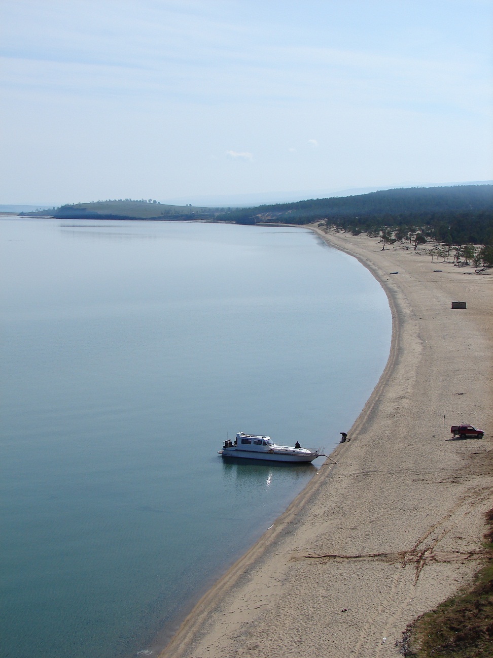 От себя добавлю , что электричество на Ольхон провели всего 7 лет назад. Автобус идет до пролива Ольхонские ворота, который разделяет Большую землю и остров. Через пролив ходит паром. Дальше нас привезли в поселок, первое ощущение- кругом песок и степь. Несмотря на то, что в 300 метрах голубые воды Байкала. Поселок очень маленький, кривые домики, где то по лучше, но основное впечатление – разруха, где то лают собаки, людей не видно. На весь поселок один магазин с небогатым набором продуктов, несколько сувенирных лавок и даже одна интернет-изба =). Основные экскурсионные услуги предлагаются в усадьбе Никиты Бенчарова, что-то вроде тур базы с уклоном в эко и деревенский стиль. На острове есть еще несколько турбаз. С жильем мы определились заранее, решили жить у частника, хотя можно было и не напрягаться по этому поводу. Сезон на Ольхоне длится всего месяц, с середины июля до середины августа. В это время вода в Малом море прогревается сильнее всего и как рассказала хозяйка наших «аппартаментов» яблоку не где упасть не только в поселке , но и на пляже все заставлено палатками. А в начале июня мест сколько хочешь. Мы жили в отдельном маленьком деревянном домике. В комнате только кровати, тумбы, все очень чисто и без изысков. Все удобства(душ, туалет, умывальник) на улице +банька (хозяйка затапливала по договоренности).Только не надо кривить носики =) в поселке нет ни канализации , ни водопровода. Даже в самой разрекламированной усадьбе Никиты Бенчарова (где останавливаются все интуристы) тоже так. Кормила нас хозяйка, надо сказать очень вкусно и не дорого.