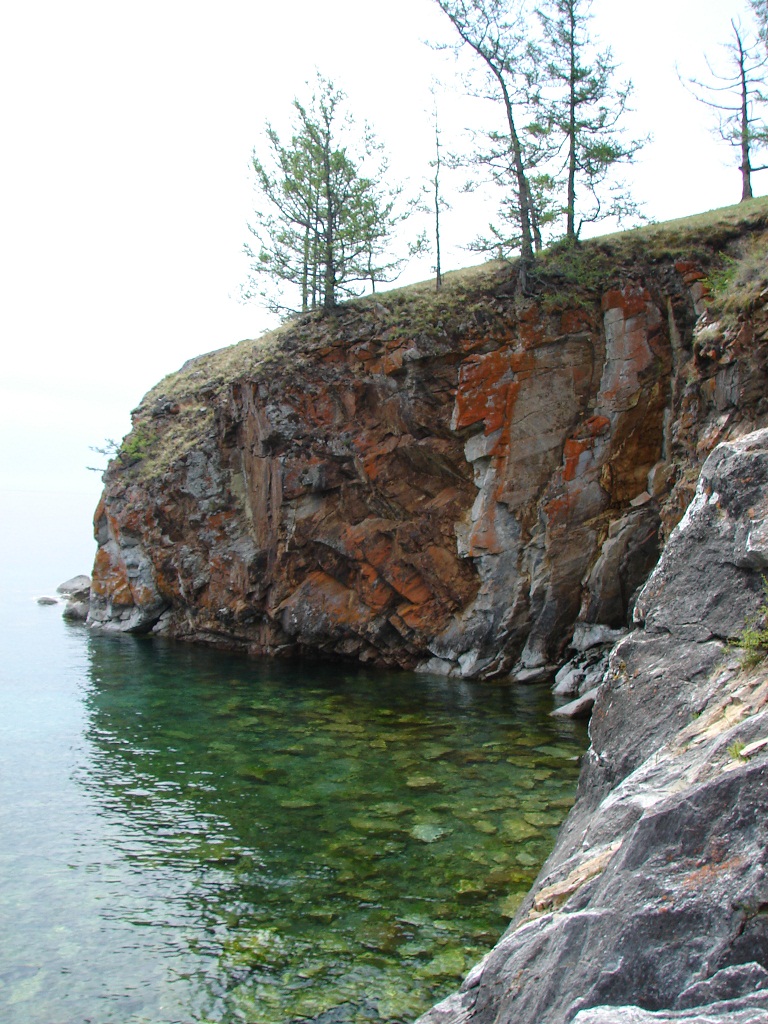 Первым делом мы побежали на пляж Малого моря смотреть на скалу Шаманку, визитную карточку острова. С этой скалой связаны различные бурятские легенды, считается что это сакральное место, где шаманы проводили обряды и приносили жертвы. Не знаю правда или нет , но место действительно очень красивое и полное отсутствие людей его только красило =) С обратной стороны скалы есть занимательный выход породы другого цвета, можно разглядеть контур дракона.
