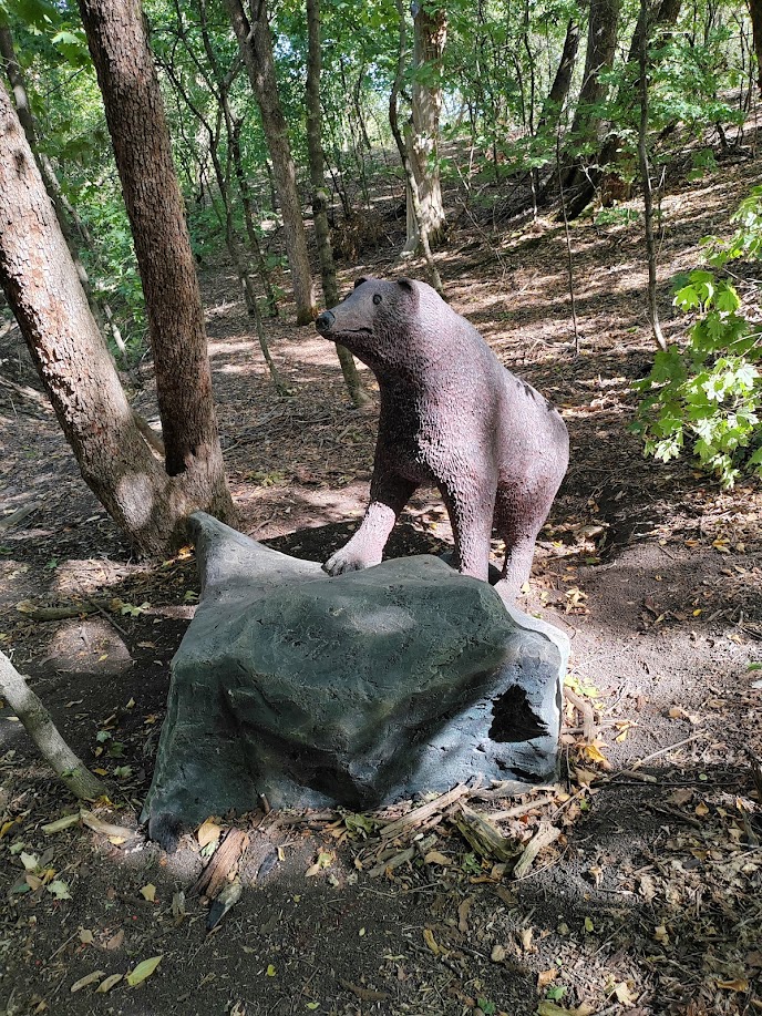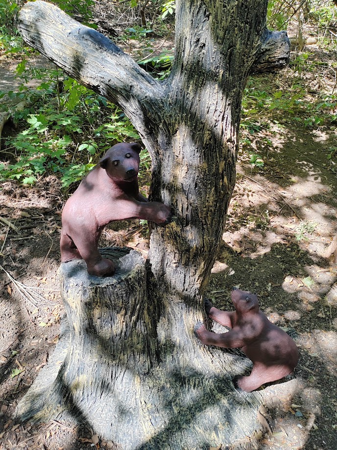 Прогулялся по роще и прудам. Обнаружил семью медведей, весьма уродливых. Интересно, кому пришла в голову идея их создать и водрузить на полянке.