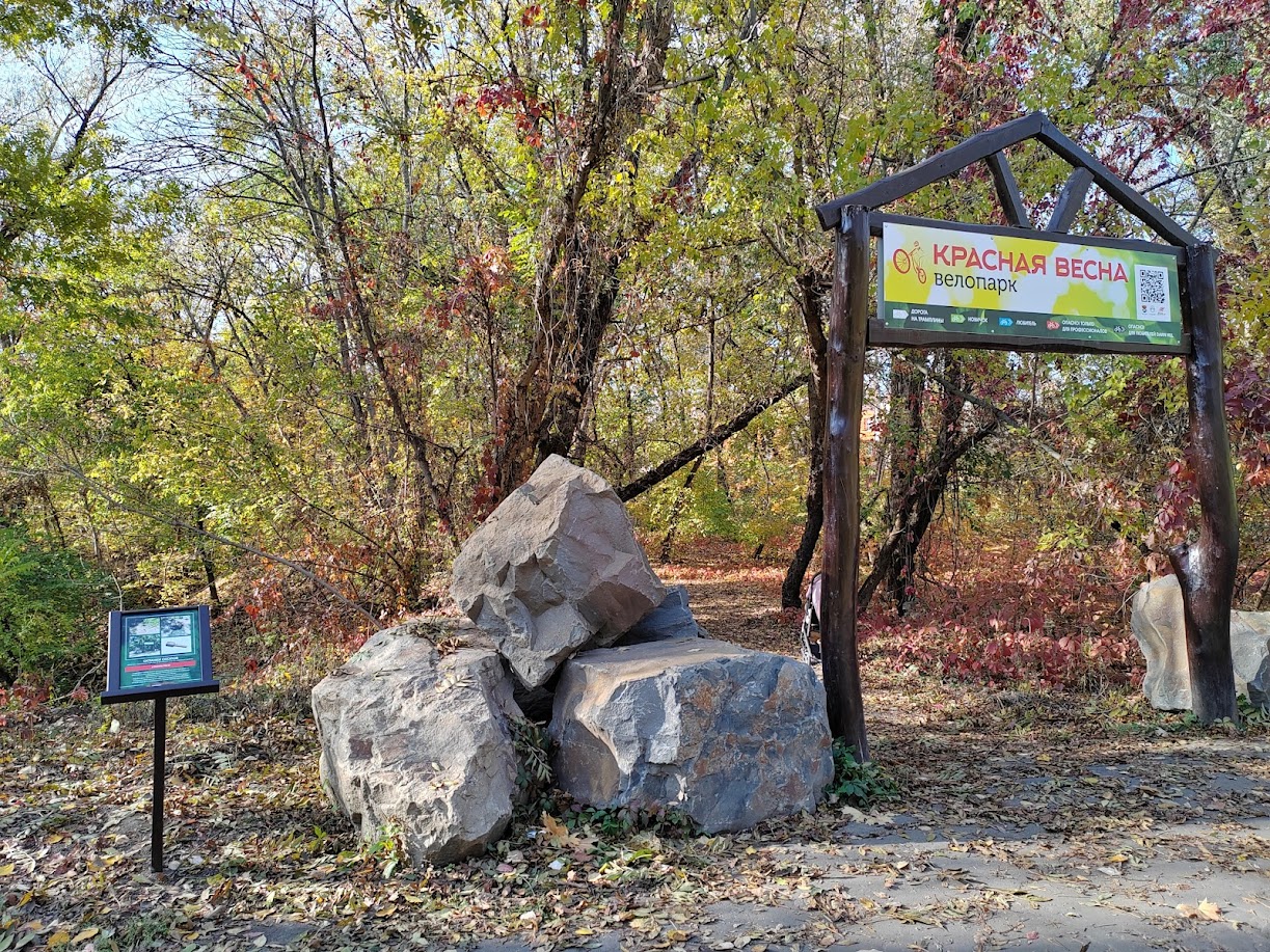 На одном из перекрёстков велопарка поставили такой инфостенд про Курнакова.