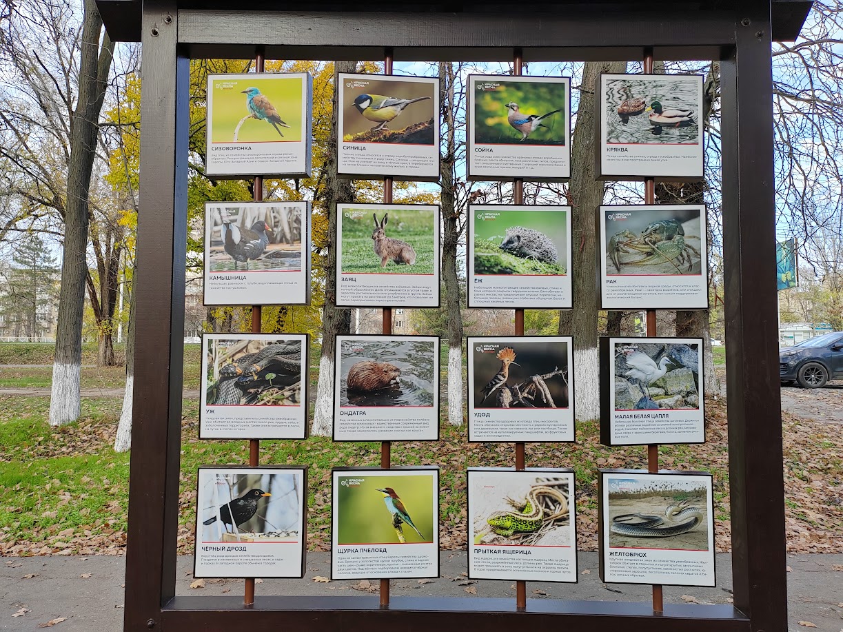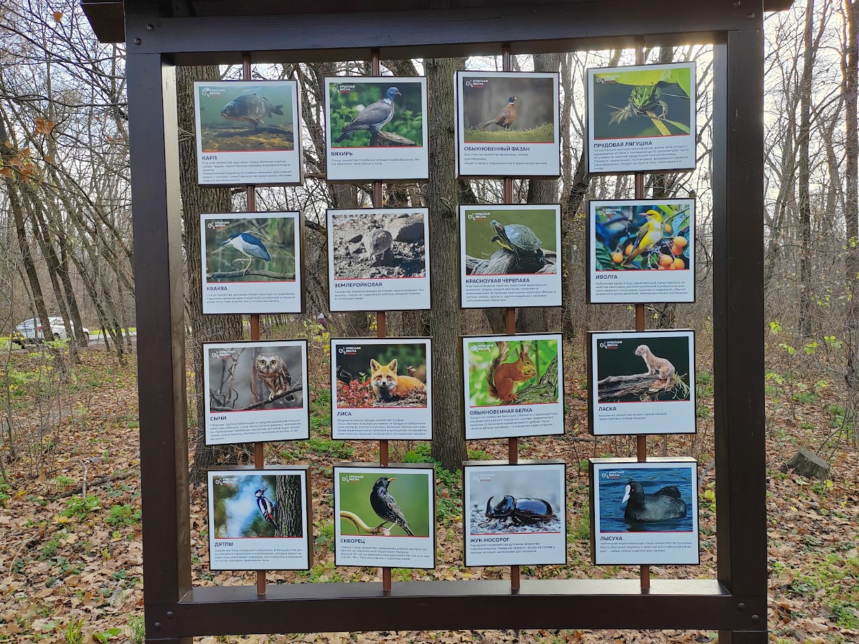 У входа на велотропу, по пути к "кадетскому" детсаду, поставили стенд с фотографиями обитателей рощи и её окрестностей, с весьма познавательным описанием оных, наверное, чтобы люди не думали, что в роще водятся только пенсы, дети, спортики и нарки