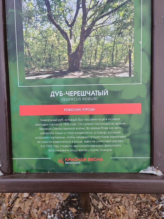 А у самого большого и старого дуба поставили планшет с информацией о нём.