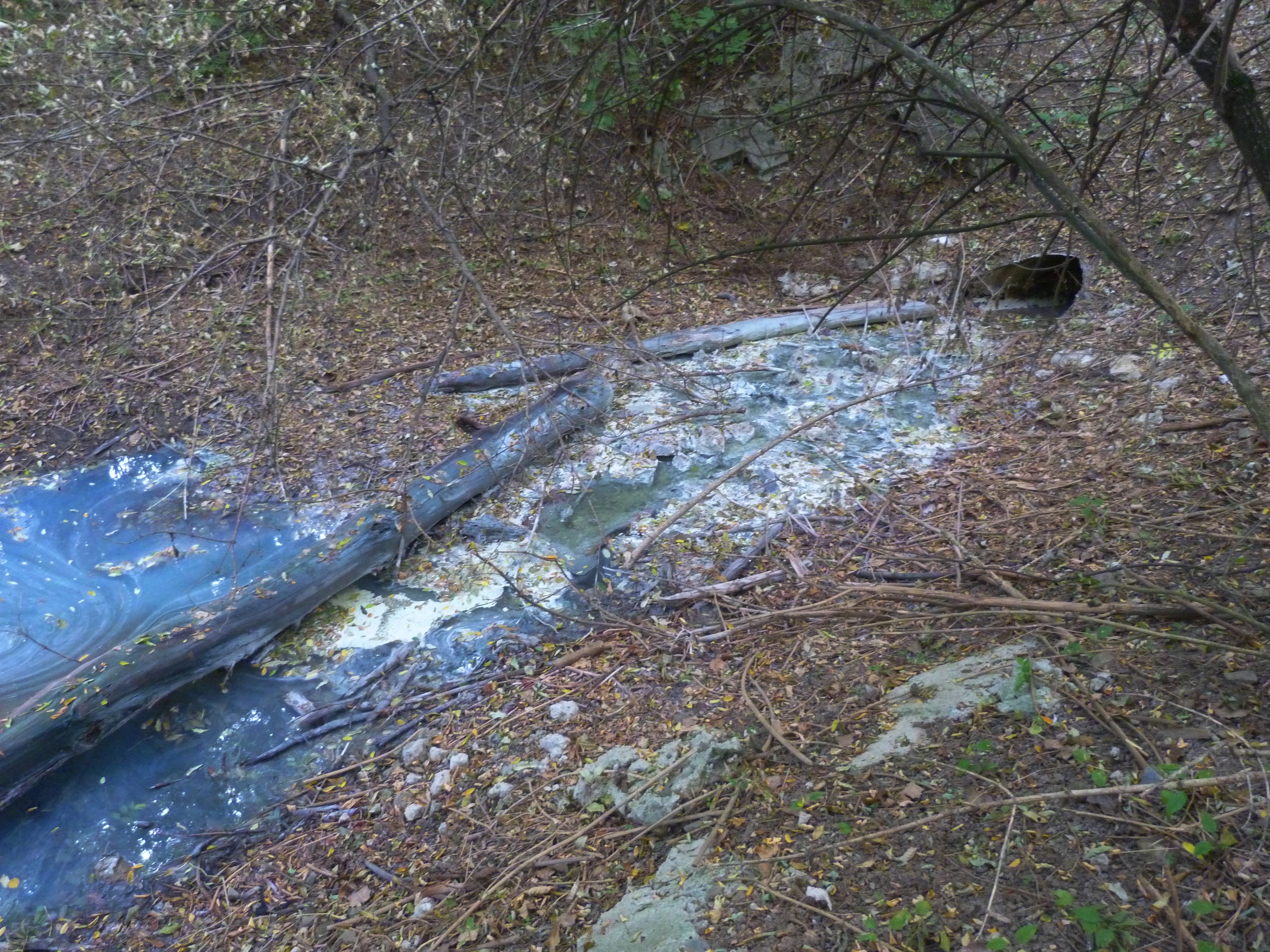 Голубое озеро. Питается водичкой из трубы внизу плотины второго пруда. Где источник этой водички? (Явно не второй пруд).