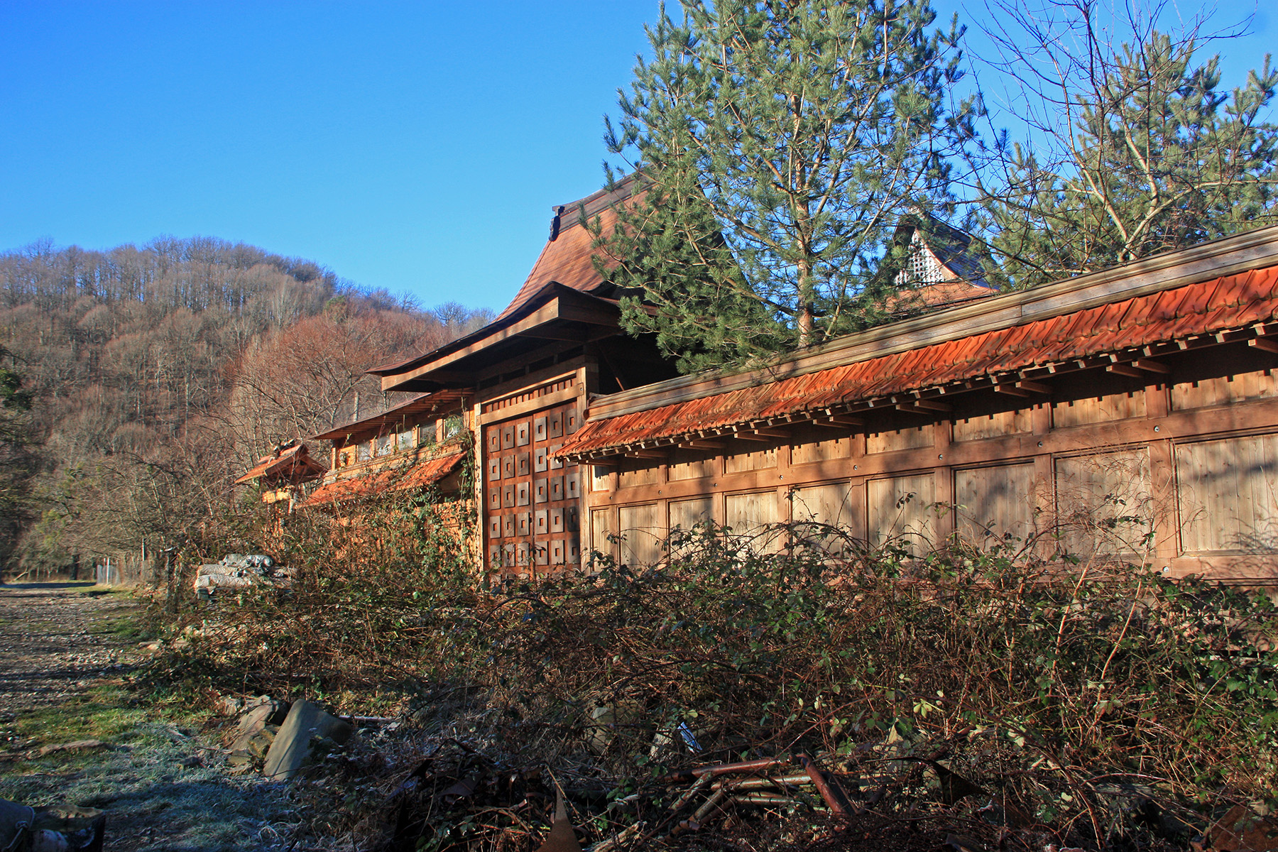 В 14-55 закончили обед и собрали рюкзаки. Выходим. От стоянок на берегу выходим на дорогу. Через 10 минут проходим заброшенную турбазу «Альпинистский приют». В 15-15 делаем «технический привал», Паша влез в грязь. Хорошо влез.