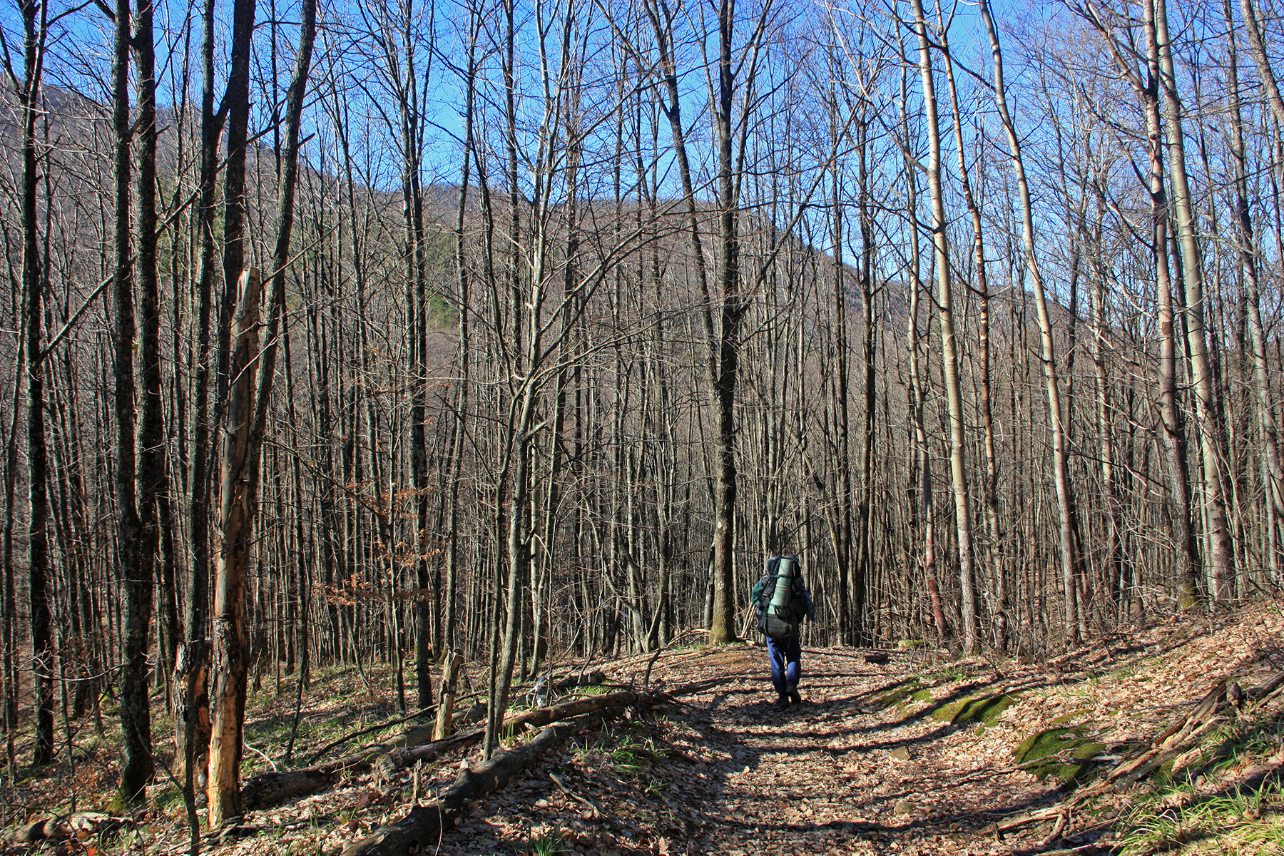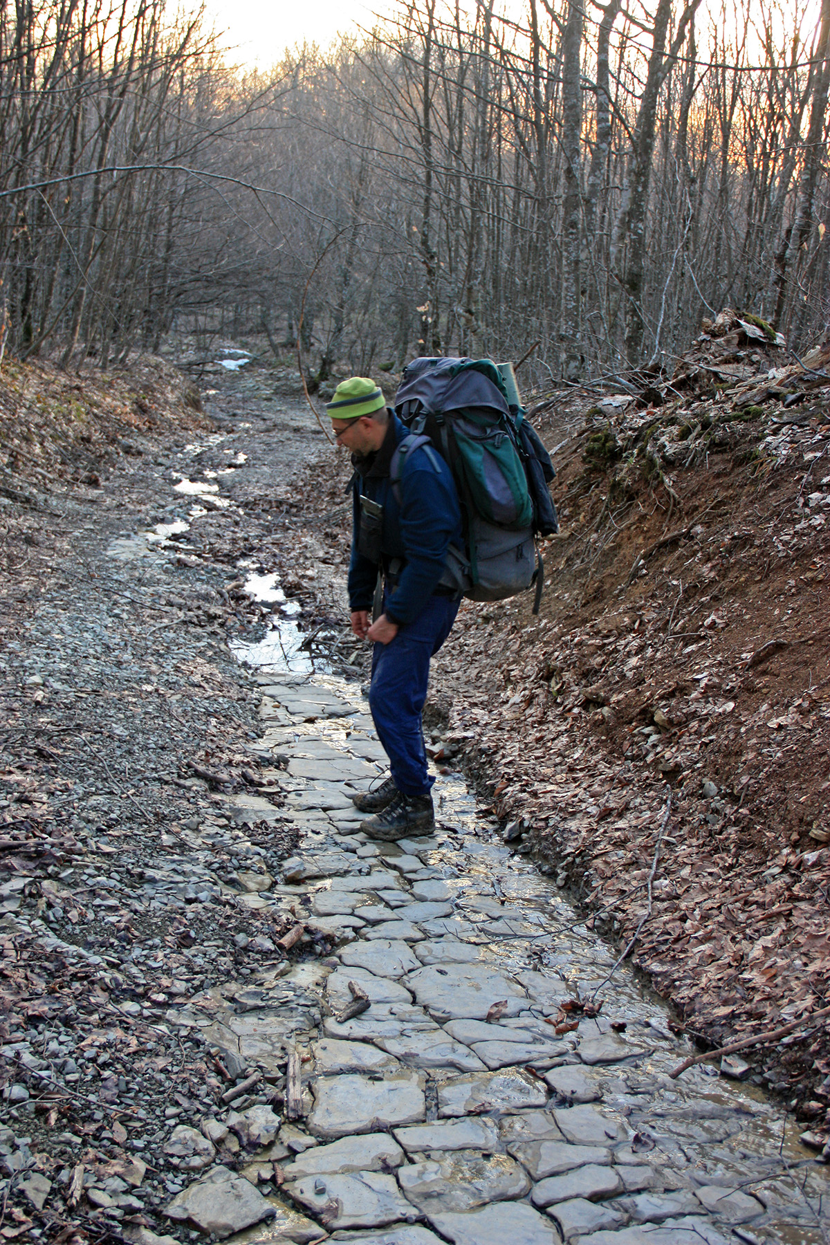 Завтрак, чай, сборы. Собрались к 10-15. Вышли по тропе, от стоянки. Влево, на спину хребтика-отрога, к Казачьей. Сразу выходим на дорогу. Дорога-каменистая, без грязи, идёт лесом. Плавно вверх-вниз. Минут через 15 выходим на прогалины, тянущиеся вдоль дороги.