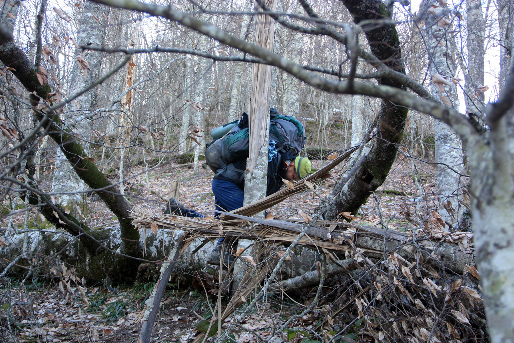 В 7-50 Паша ещё в спальнике. Я развожу костёр. Готовим завтрак, варим пшеничную кашу. С грудинкой хорошо пошла! Пока вожусь у костра, Паша из палатки спрашивает, мол, слышишь ли кабана? Сюда идёт. «Где?» «Там!» Оказывается, за спиной, но сколько не смотрел, никого не увидел. А Паша уверяет, что чётко слышал, как кабан к нам шёл. Вполне может быть, ветер сверху, от кабана, и перегиб склона близко. Мог не учуять, и выйти на перегиб. Здесь увидел нас, и сразу ушёл. Жаль. Селфи не удалось сделать…