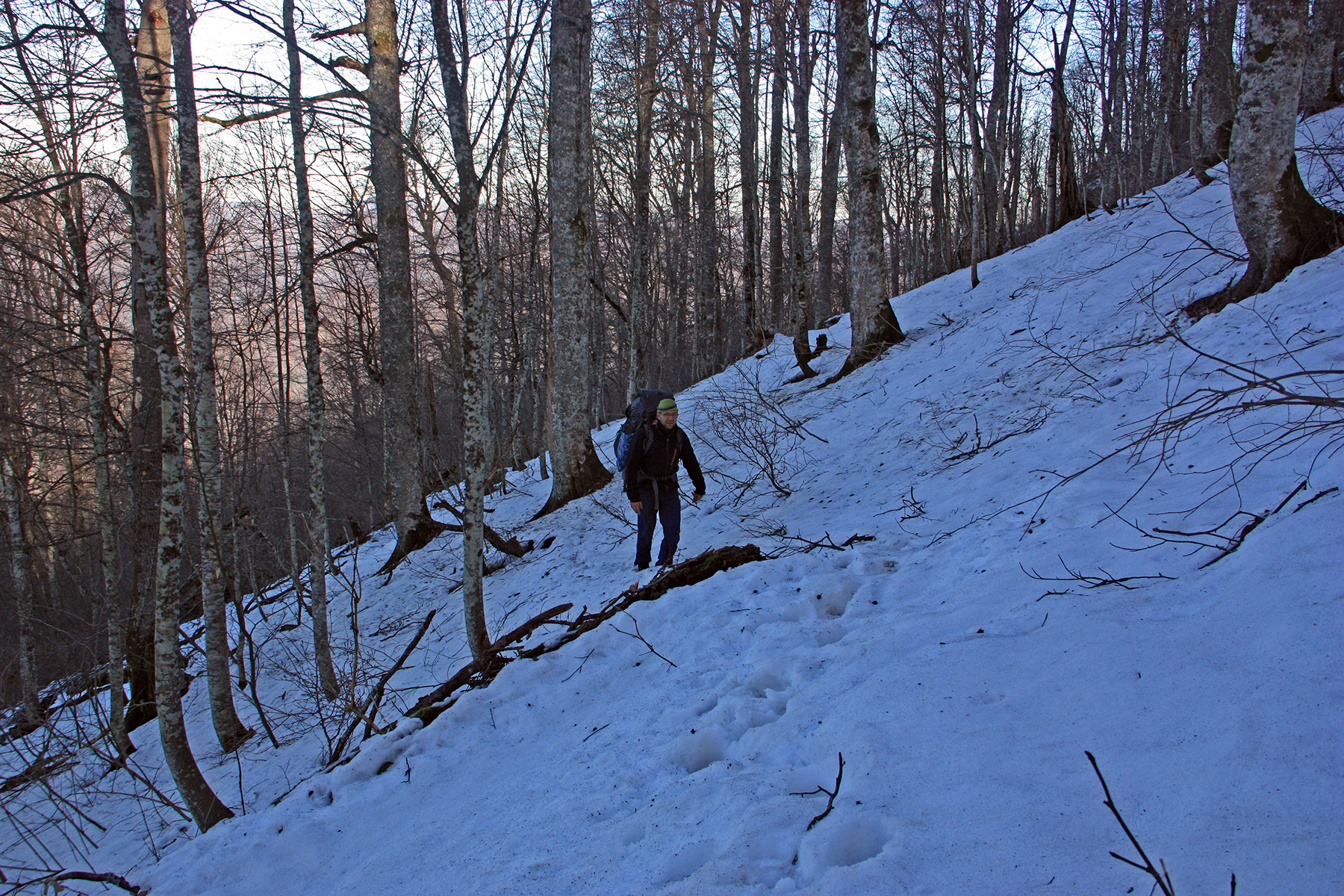 ...Паша своими грязными ботинками топчет чистую тропу.