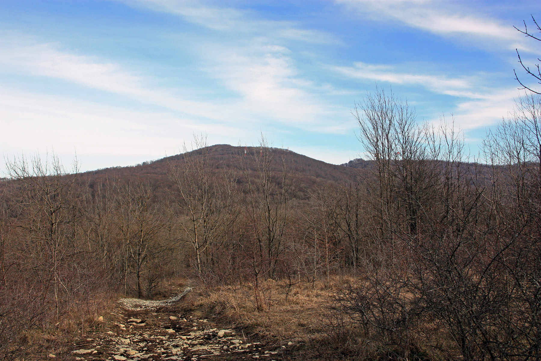 ...бугорок на фоне неба, возможно гора Абин (728 м).