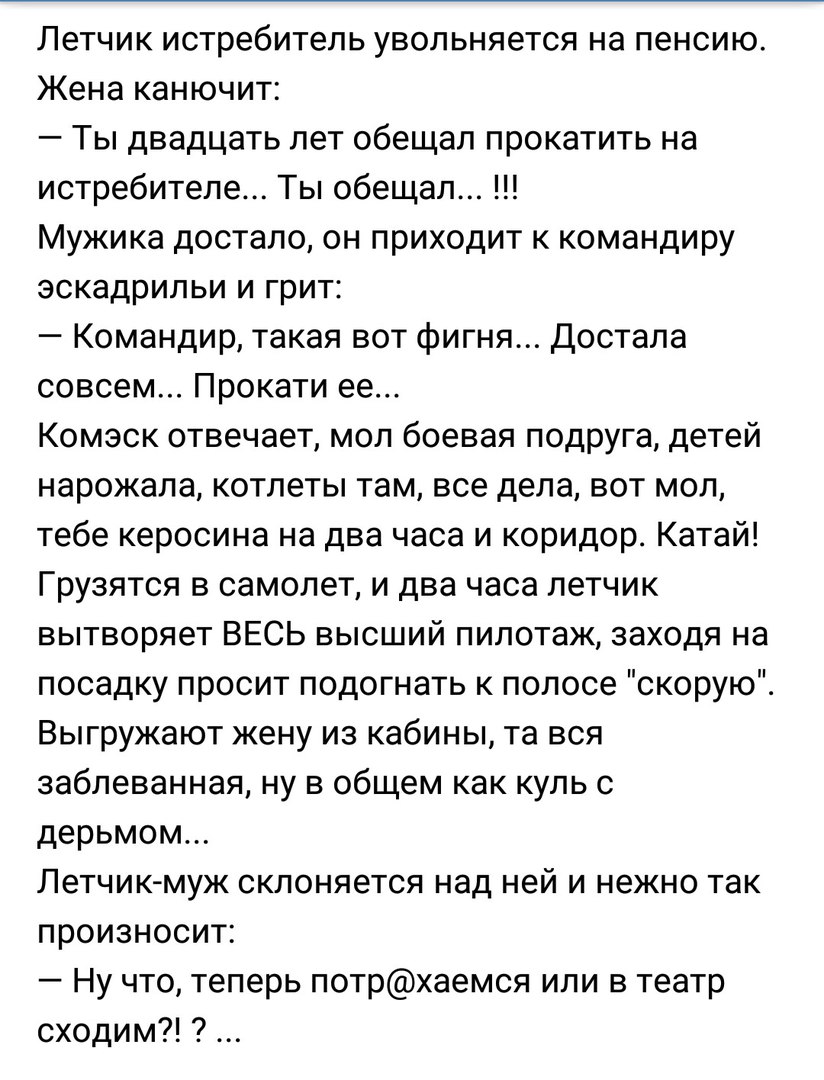- Ну что, жарили - жарили, потом он достал, попросил попробовать, я попробовала, сказала что сырая, а он ответил: "Тогда разворачивайся, в "духовке" будем допекать... "