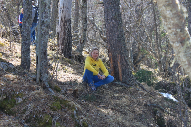 На середине пути ушли в сторону от дороге. А там скалы, лес, виды :) Красота. Правда спускались потом по снегу, некоторые на пятой точке, цепляясь за деревья))