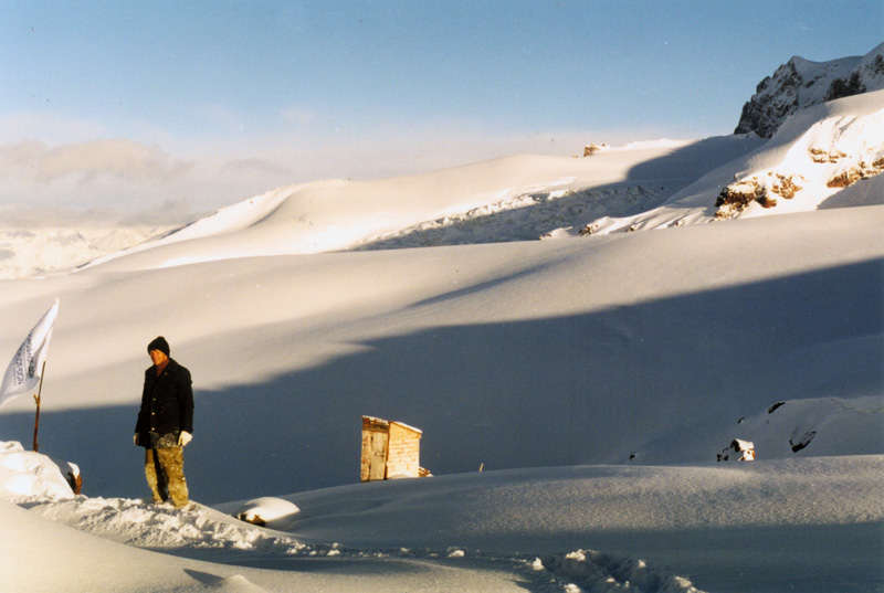 А здесь-верховья ущ. Азау, ледник Азау. По нему, через пер. Чипер и Чиперазау (1-А;3263) можно попасть в ущ. Ненскра, откуда, ещё, перевалив пер. Басса, и пройдя ~20 км, попадали в селение Накра. Откуда в советское время уезжали автобусом в Сухуми, на Чёрное море.
