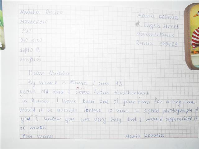 кстати, ответа-то ты не ждешь от Наталии Орейро ,написав письмо? А то вдруг до сих пор :D А я все письмо не отправлю :crazy: