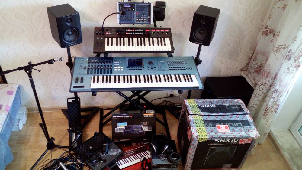 Производство Япония,приобретены и установлены 2 планки по 512Мб памяти,кабель MIDI-MIDI, кабель RCA-RCA цифровой, прошивка не менялась, куплено очень много коммерческих библиотек более 30 Гигабайт звуков, ритмов,невозможно представить их количество!!! все так и не смог прослушать физически, смотрите перечень на скриншотах все не стал делать !, так же покупались программы для редактирования звуков пресметов, сохранения собственных библиотек.