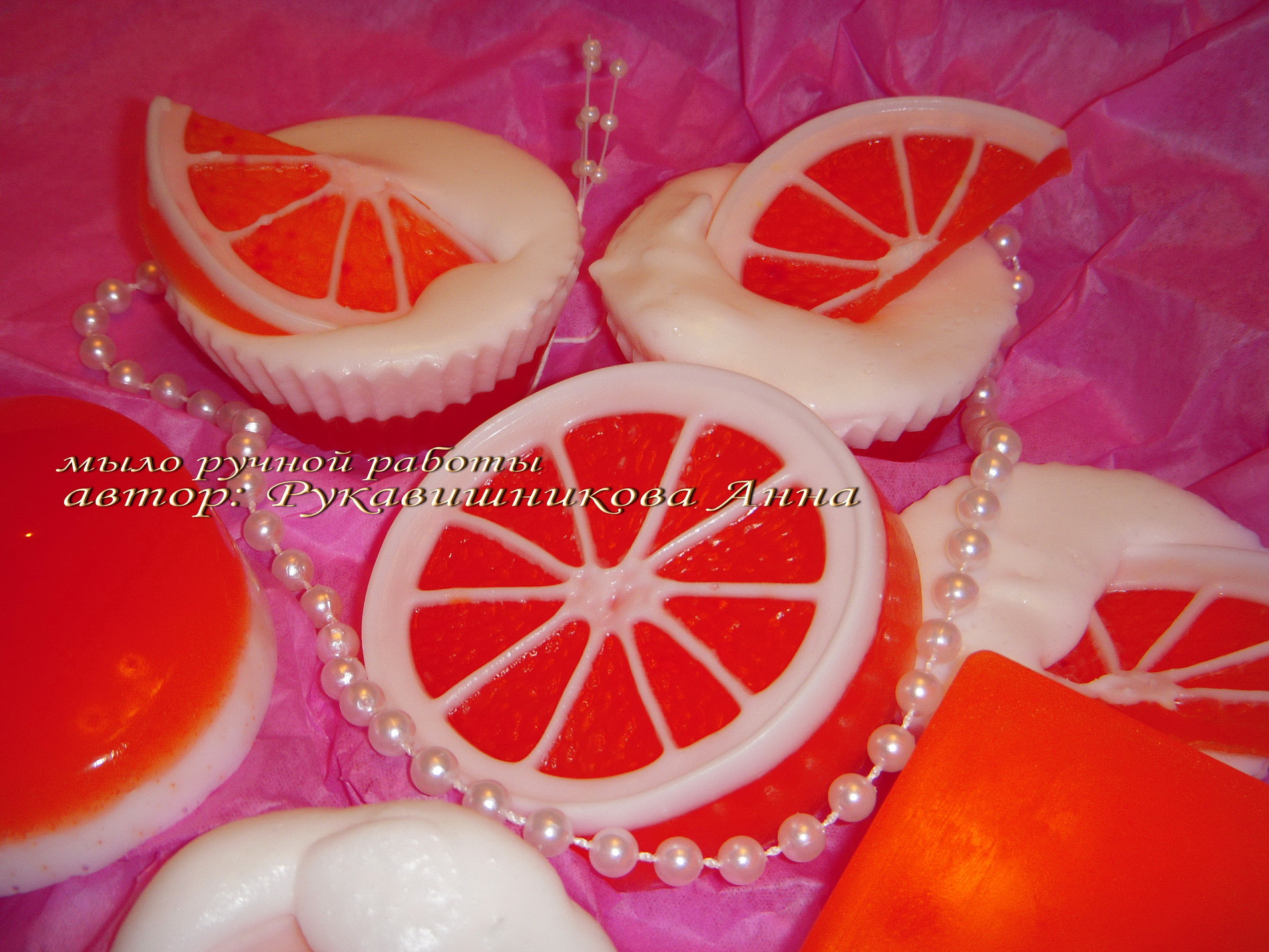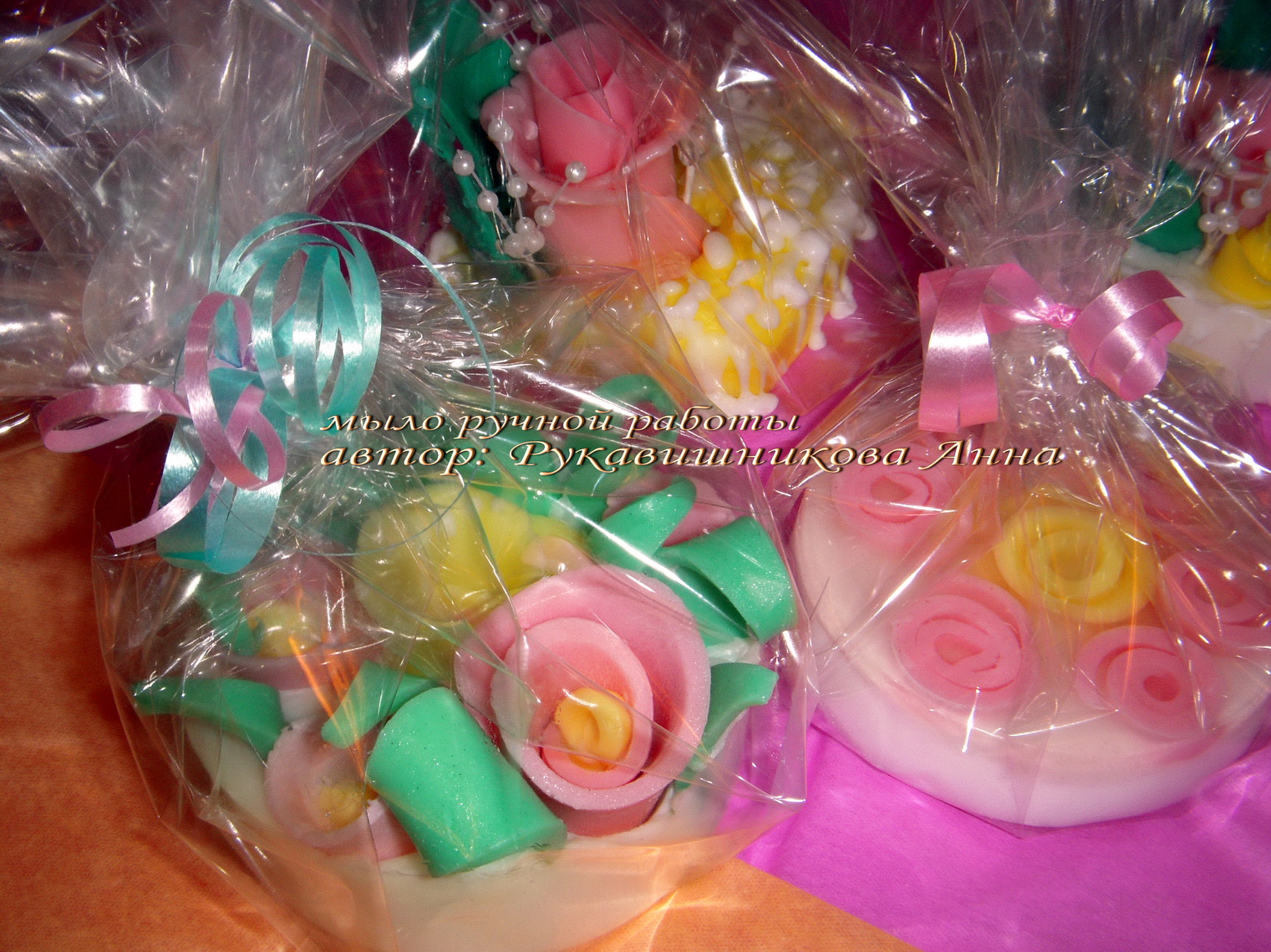 На первых двух фотографиях, мыло ручной работы "Радость сладкоежки", с которым я участвовала в Ростовском конкурсе мыловаров. Заняла 1-е место)))